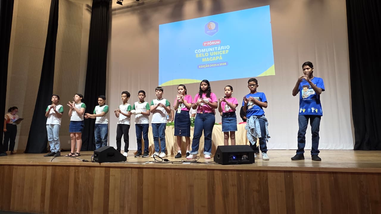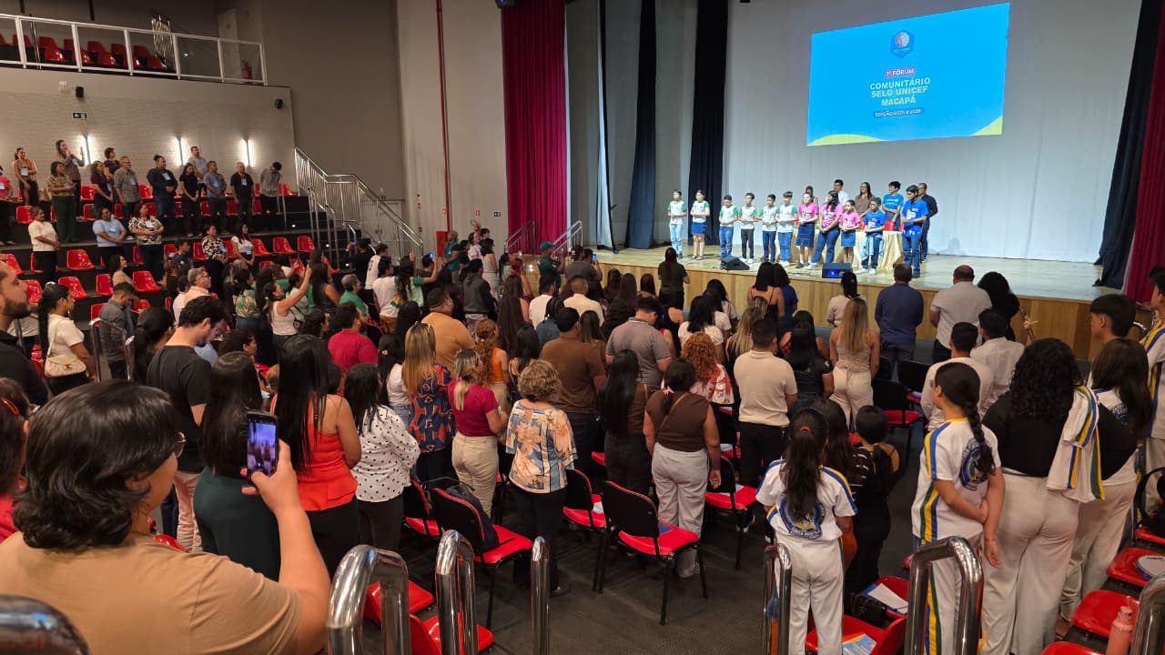 A Prefeitura de Macapá realizou, neste sábado (29), o 1º Fórum Comunitário do Selo Unicef, Edição 2025–2028, reunindo mais de 200 participantes no Teatro Municipal Fernando Canto e no Centro de Educação Infantil O Pequeno Príncipe, ambos localizados no Centro da cidade. A ação intersetorial envolve as secretarias municipais de Saúde, Educação, Assistência Social e o Conselho Municipal dos Direitos da Criança e do Adolescente (CMDCA).
