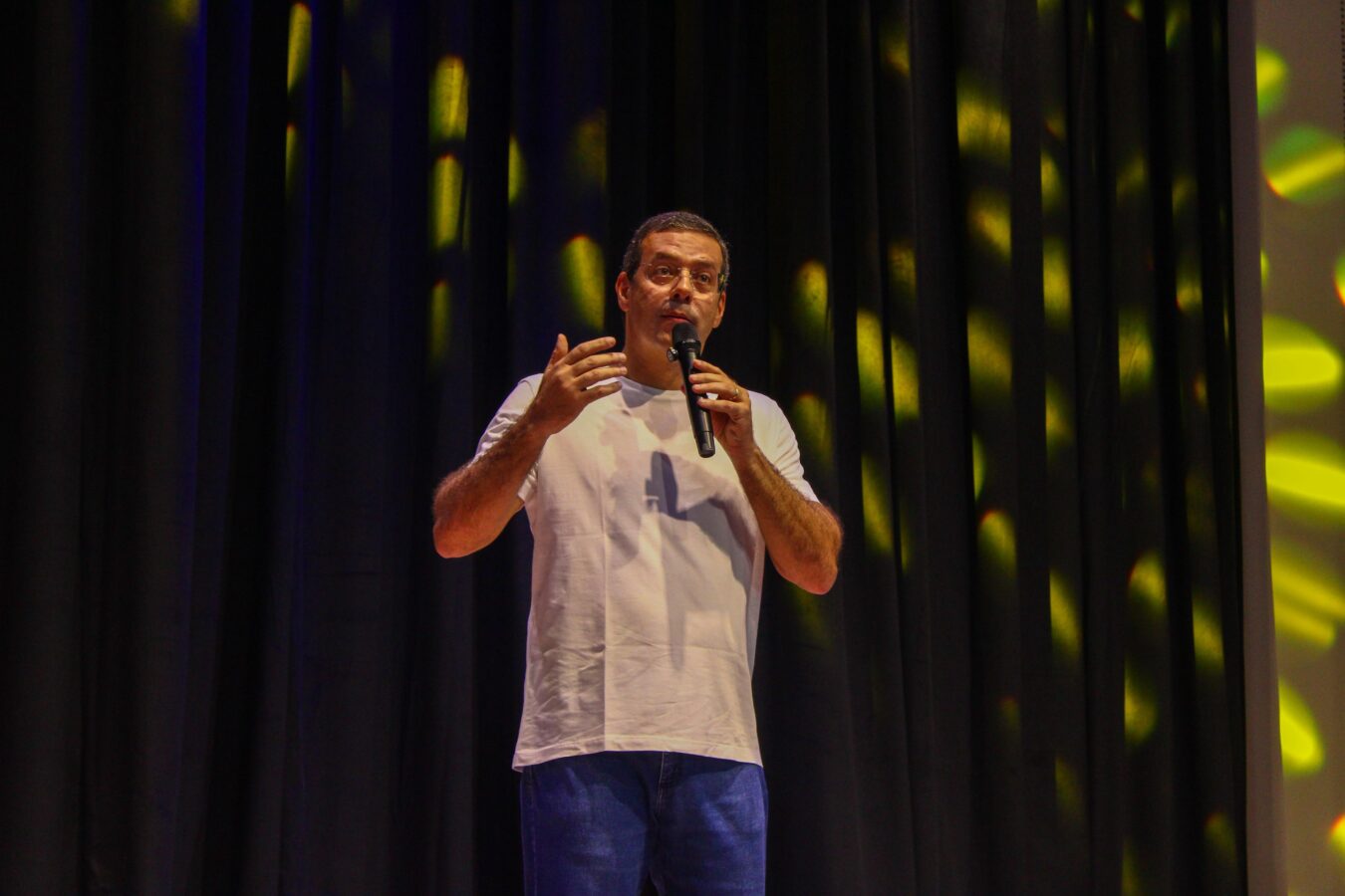 Prefeito de Macapá, Dr. Furlan, realiza teste de som no teatro | Foto: Emanuelle Gomes/PMM