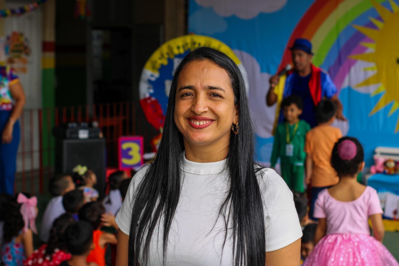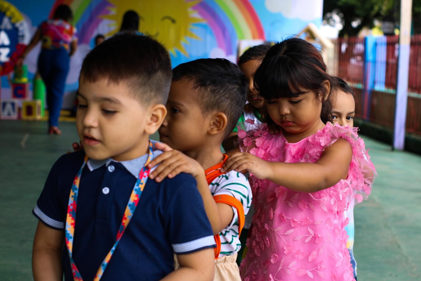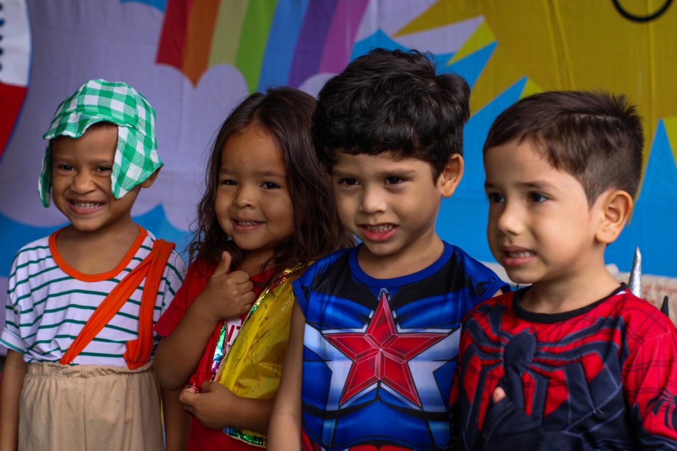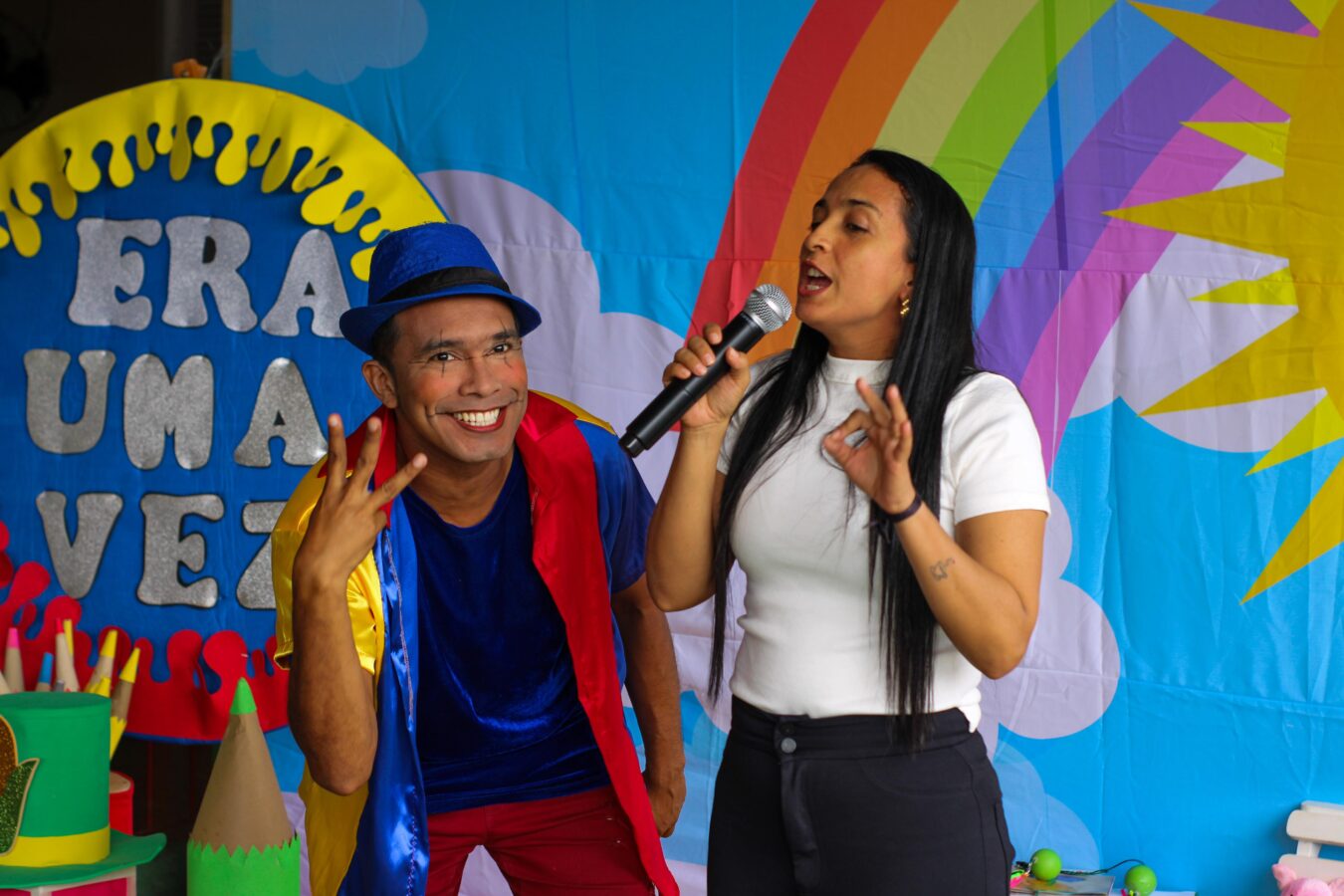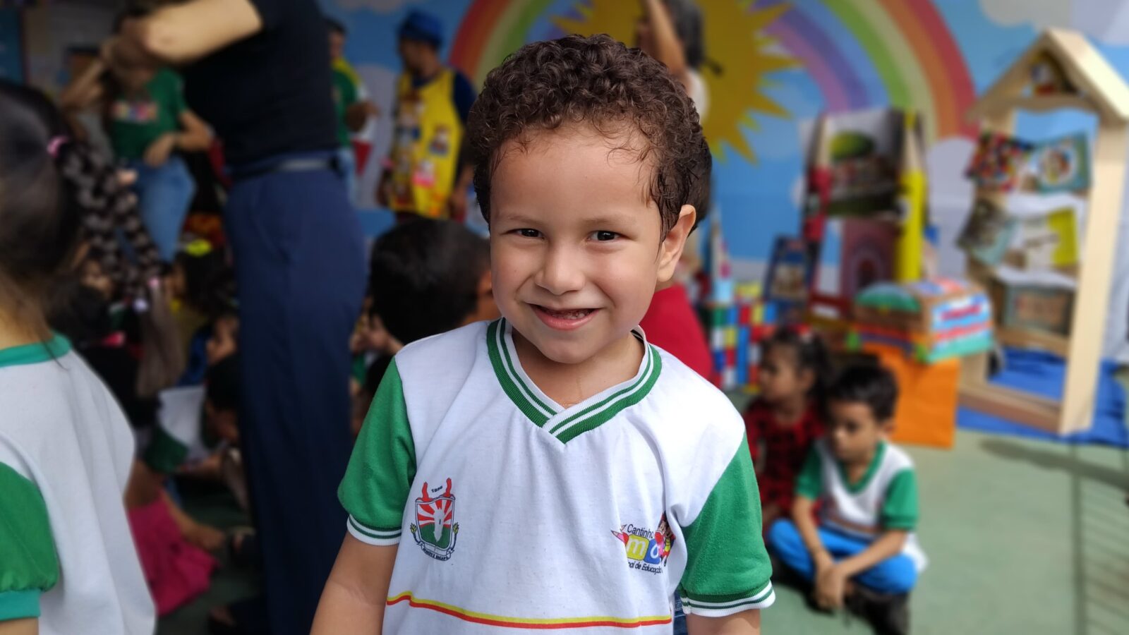 O pequeno Inácio Miguel, de 5 anos, estava feliz com as atividades lúdicas e brincadeiras. “Eu estou suado de tanto pular”, disse o menino, sorridente.
