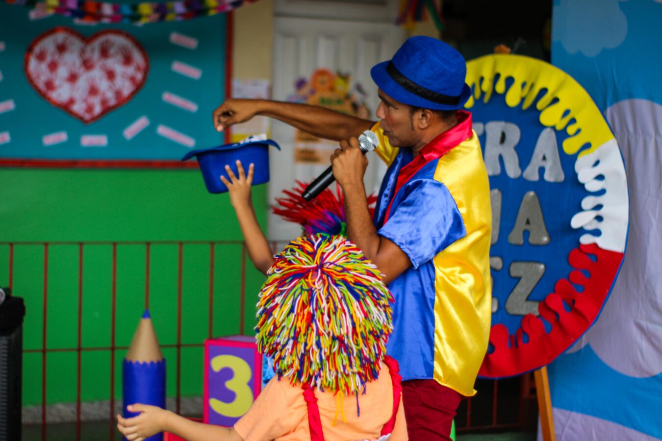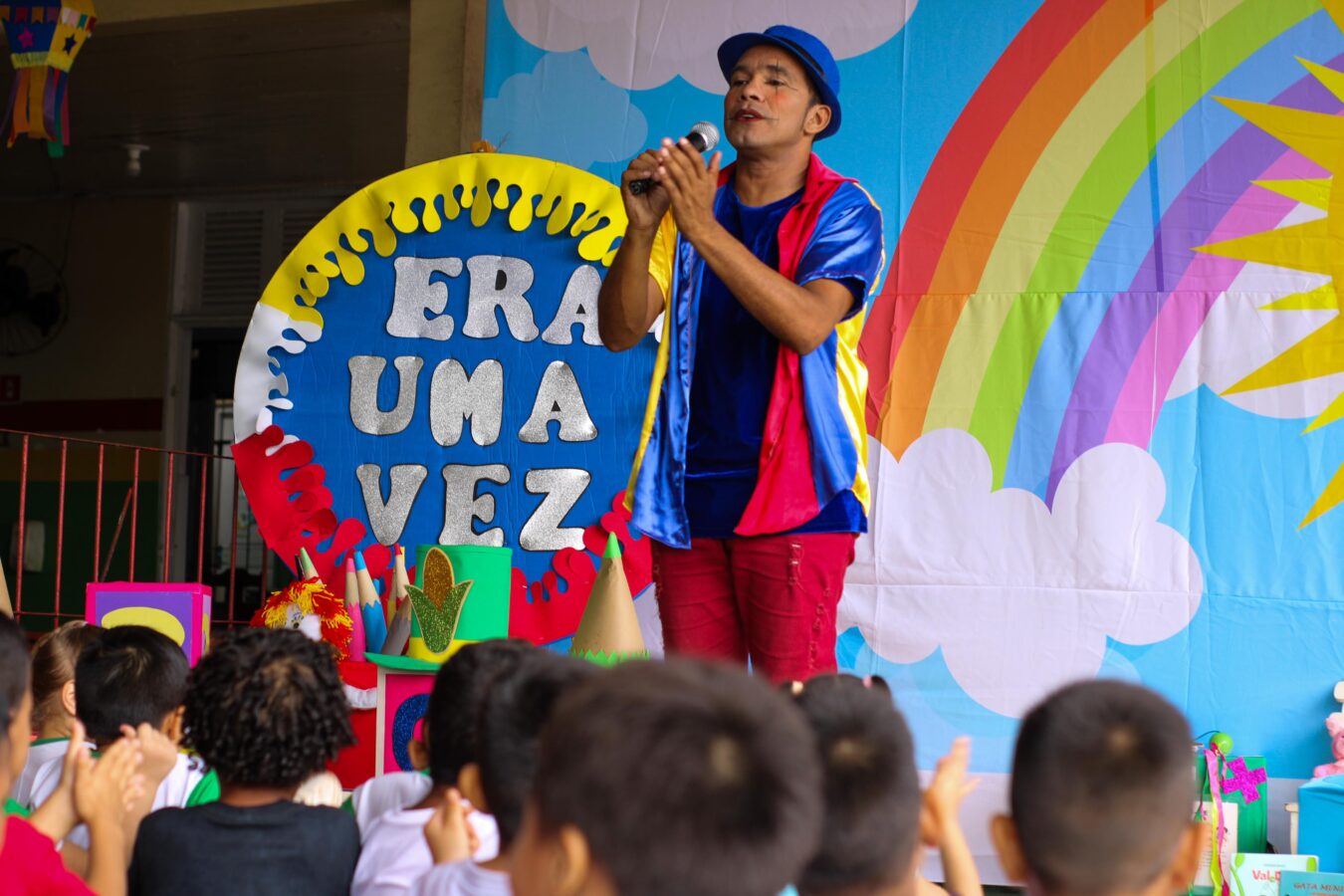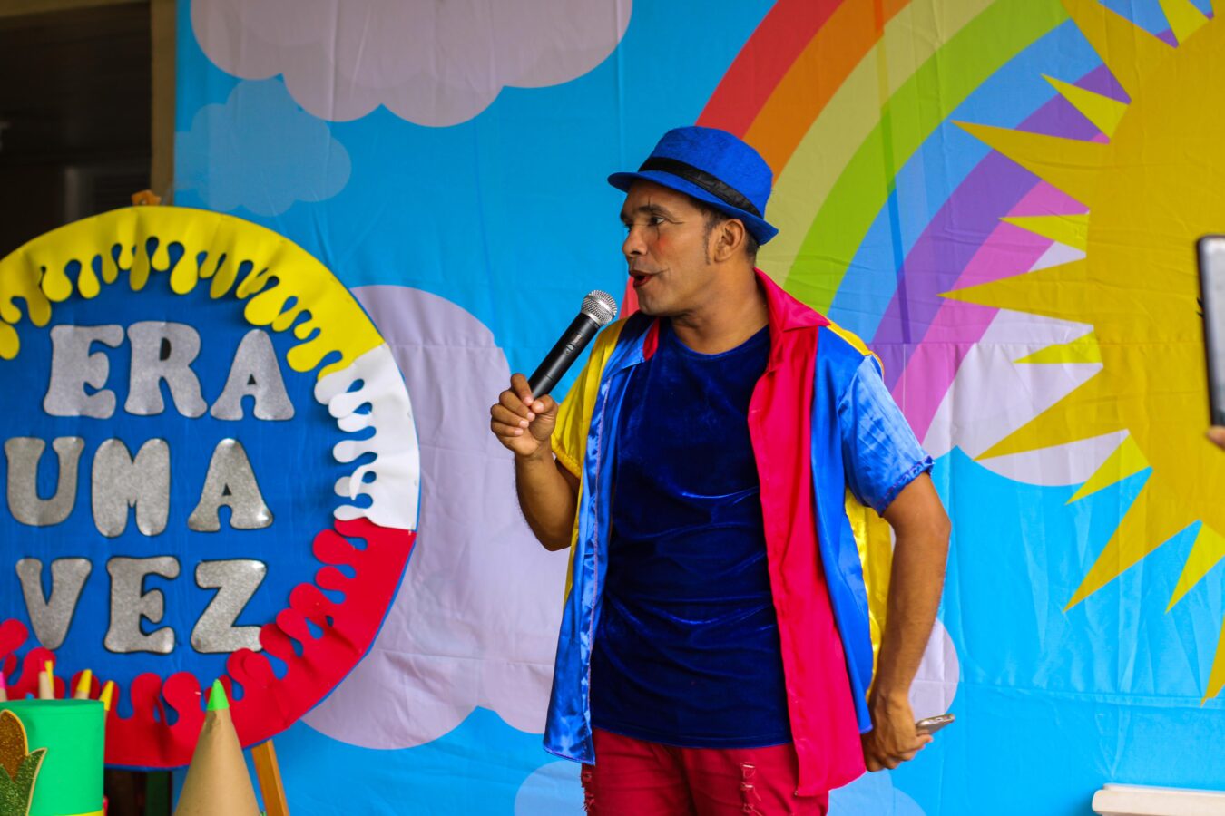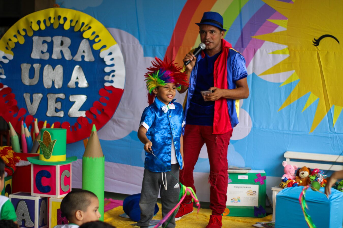A Prefeitura de Macapá, por meio da Secretaria Municipal de Educação (SEMED) e Divisão de Educação Infantil, realizou nesta terça-feira (27), nos períodos da manhã e tarde, o projeto de leitura Era Uma Vez, na Escola Municipal de Educação Infantil, Cantinho do Amor, zona norte de Macapá. O projeto desenvolve atividades lúdicas de leitura nas Creches e Pré-escolas ao longo do ano letivo, coordenado pelo Contador de histórias Fábio Nescal (Tio Nescal).