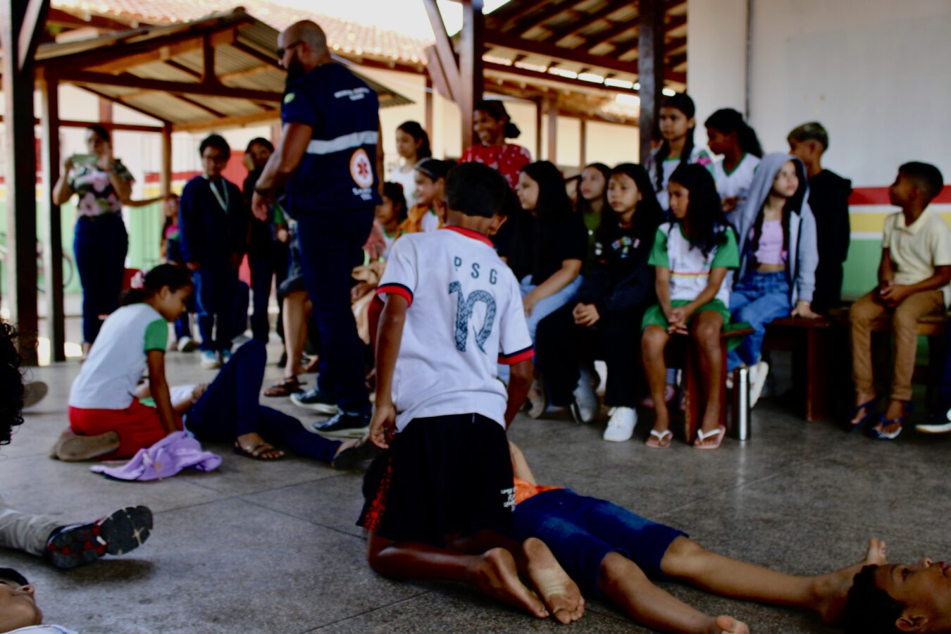 Alunos participam de ação do Programa Saúde na Escola e aprendem noções de primeiros socorros
