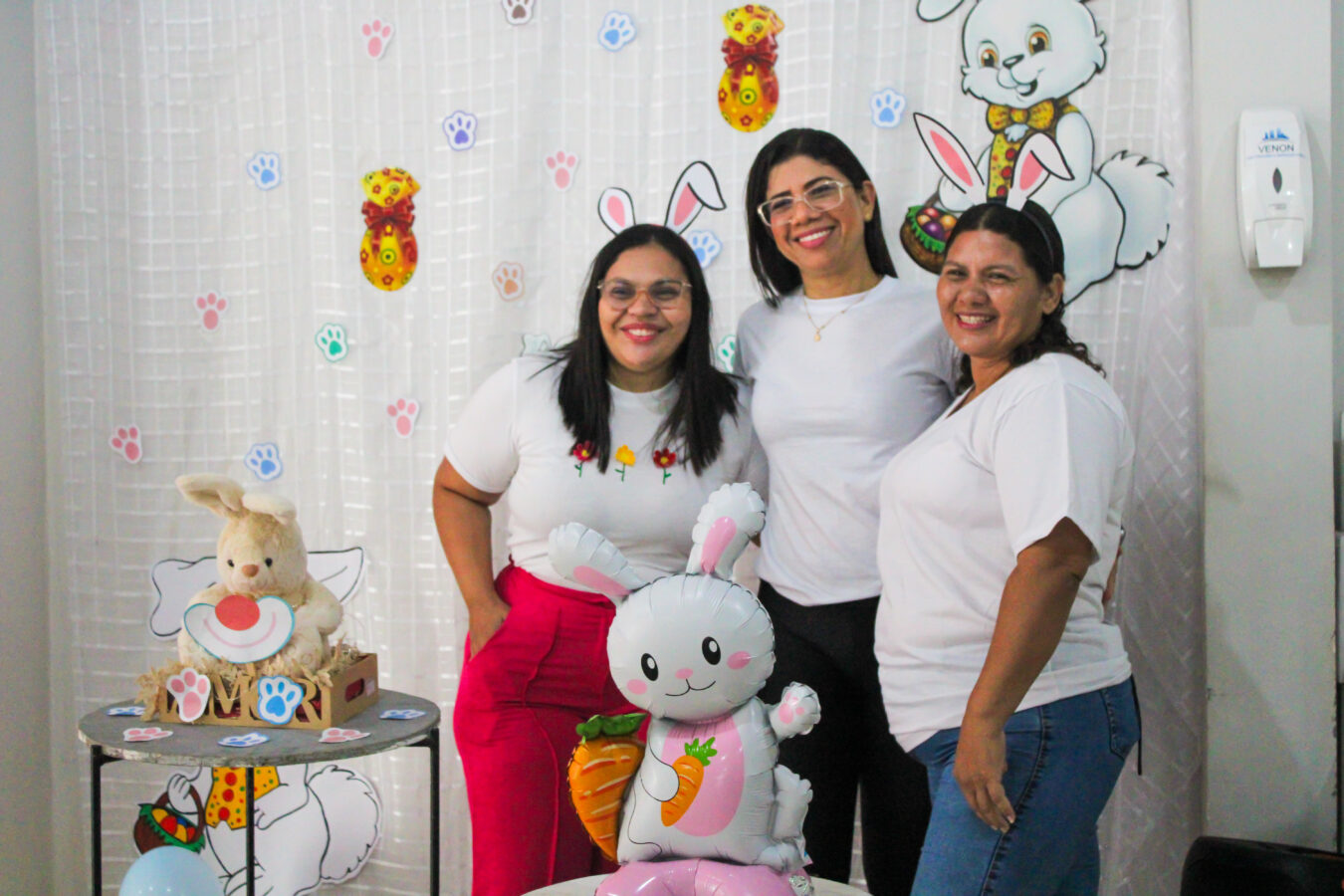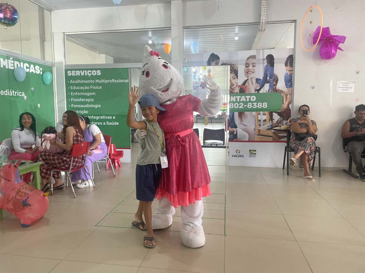 Nesta quinta-feira (17), véspera da Sexta-feira Santa, as crianças assistidas pelo Centro Especializado em Reabilitação (CER), da Prefeitura de Macapá, participaram de uma manhã de interação e lazer em comemoração à Páscoa, com atividades de dança e brincadeiras lúdicas, além da caça aos ovos de Páscoa e da presença da Maria Gotinha, a amiga número um da imunização.