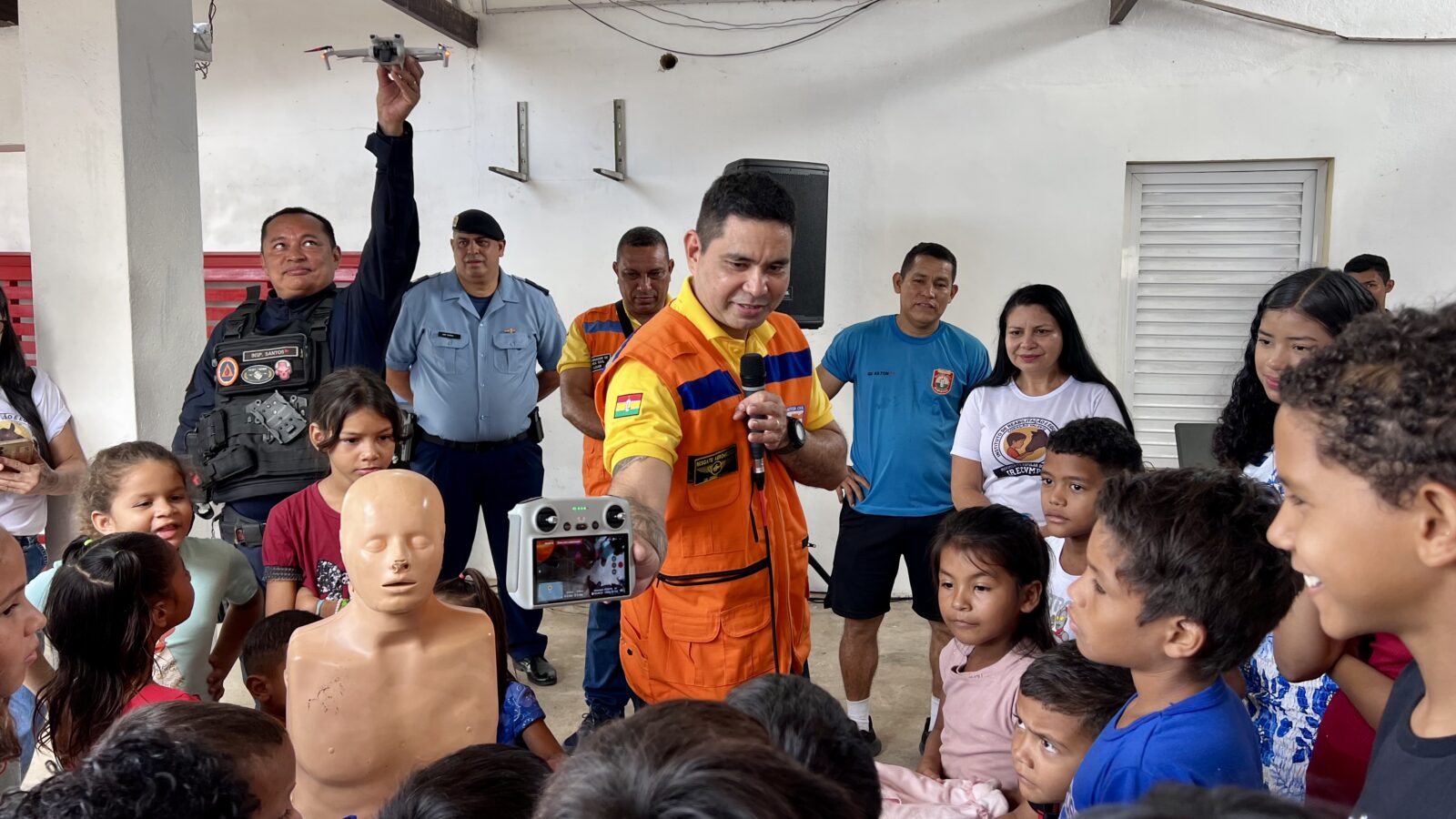 A Defesa Civil apresentou o uso de tecnologias, como drones, no monitoramento de áreas de risco e na segurança pública, além de instruções de primeiros socorros | Foto: Wellington Barros/PMM