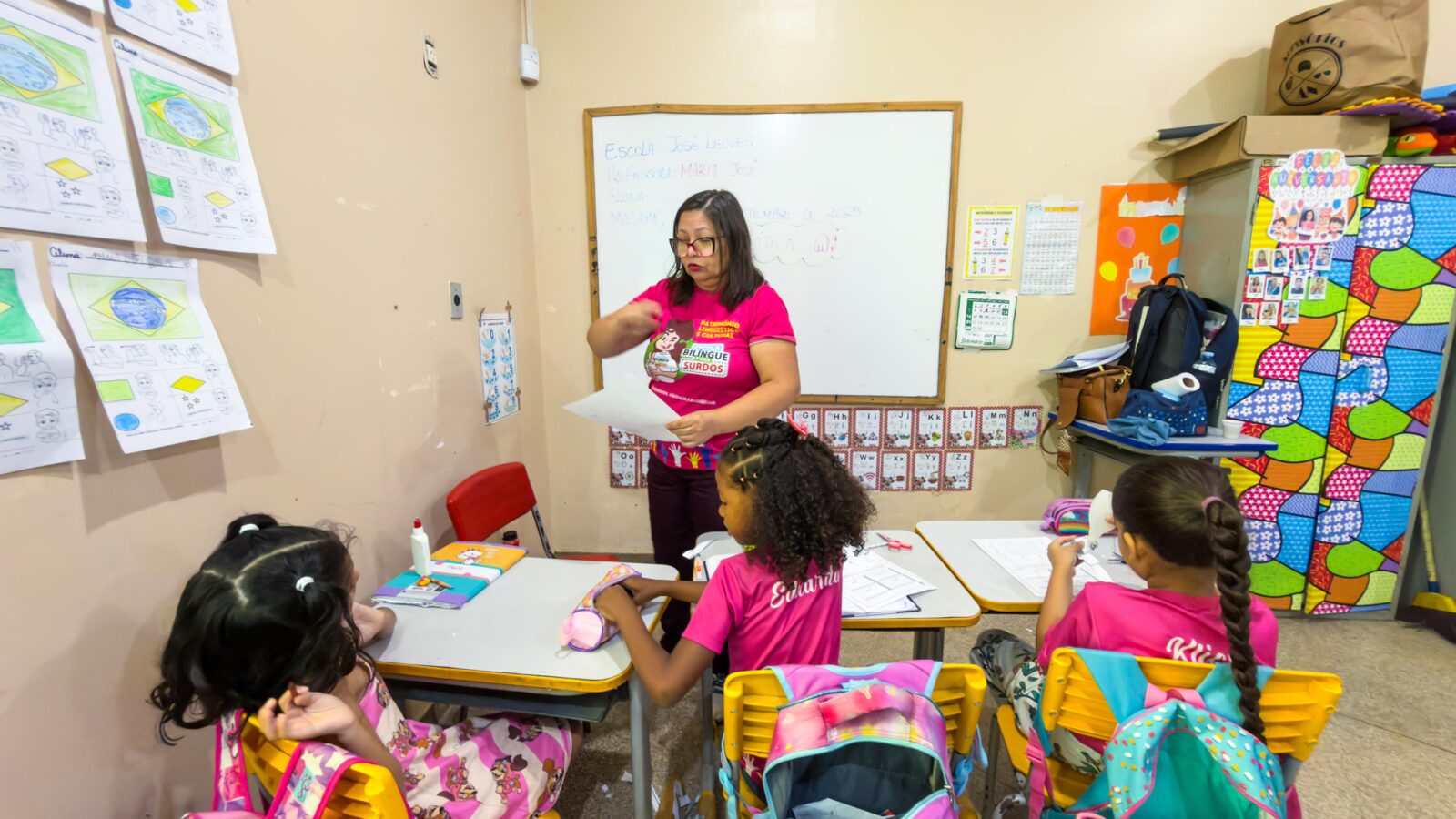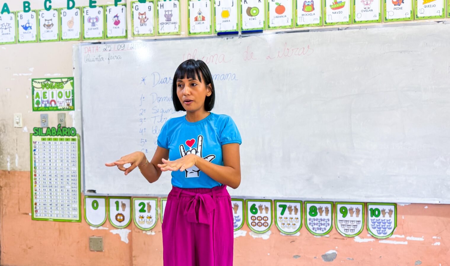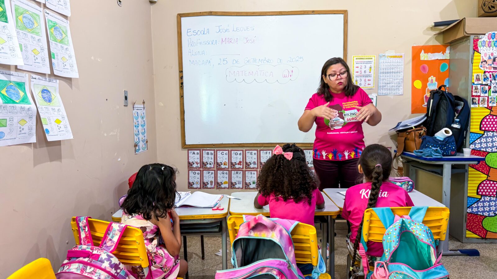 Duas professoras ensinam na Sala Bilíngue e recebem apoio de estagiárias dos cursos de Letras-Libras (Português) da Universidade Federal do Amapá.
