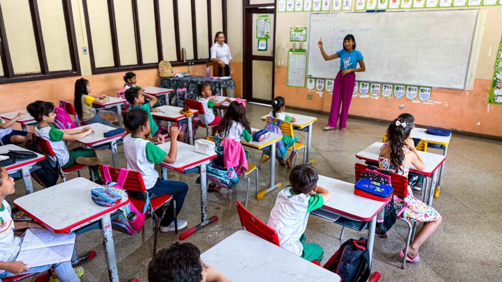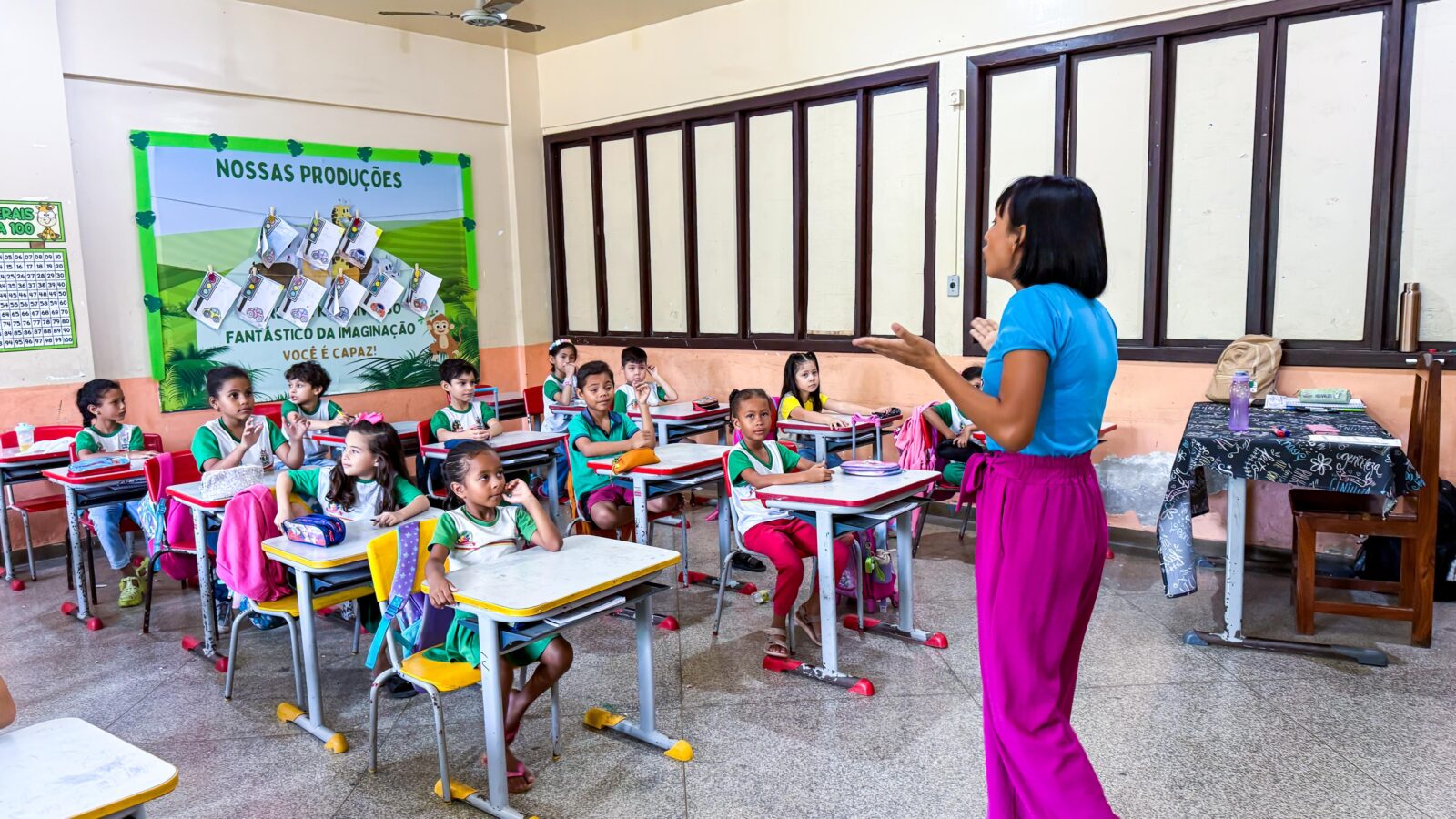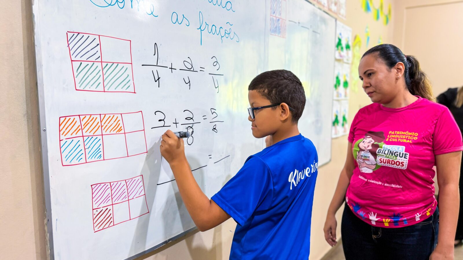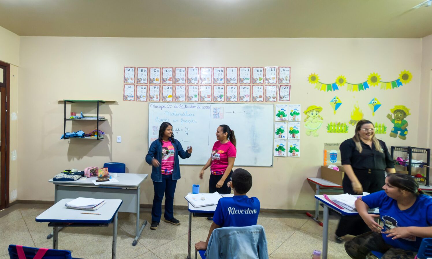 Duas professoras ensinam na Sala Bilíngue e recebem apoio de estagiárias dos cursos de Letras-Libras (Português) da Universidade Federal do Amapá.