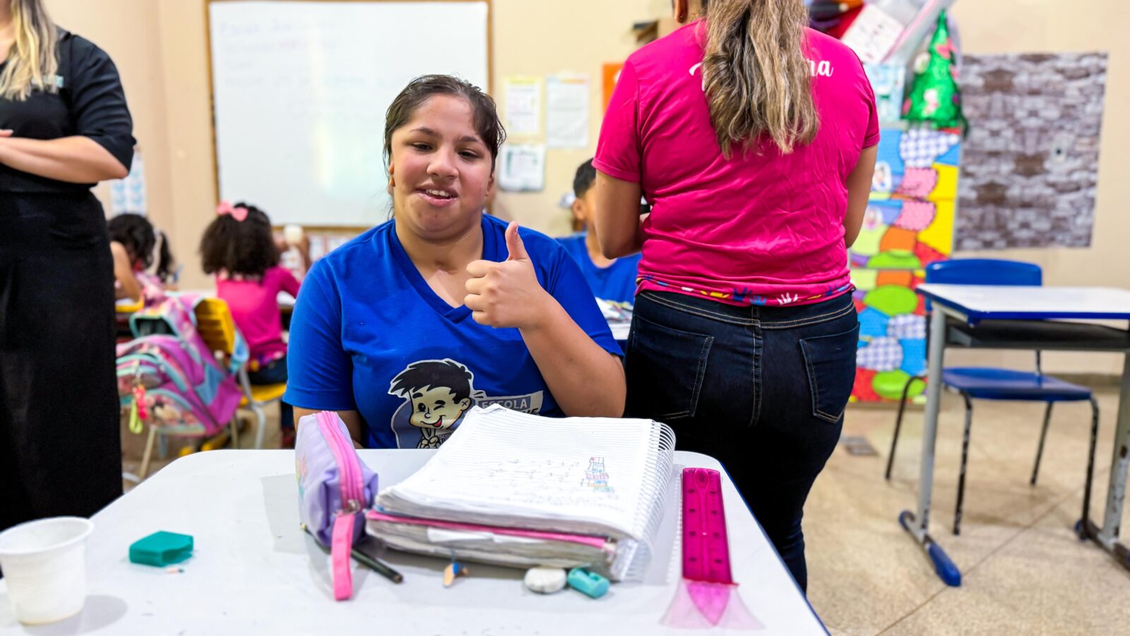 Professora Valecia Del Castilo e o estudante Pablo Ramos | Foto: Jesiel Braga /PMM