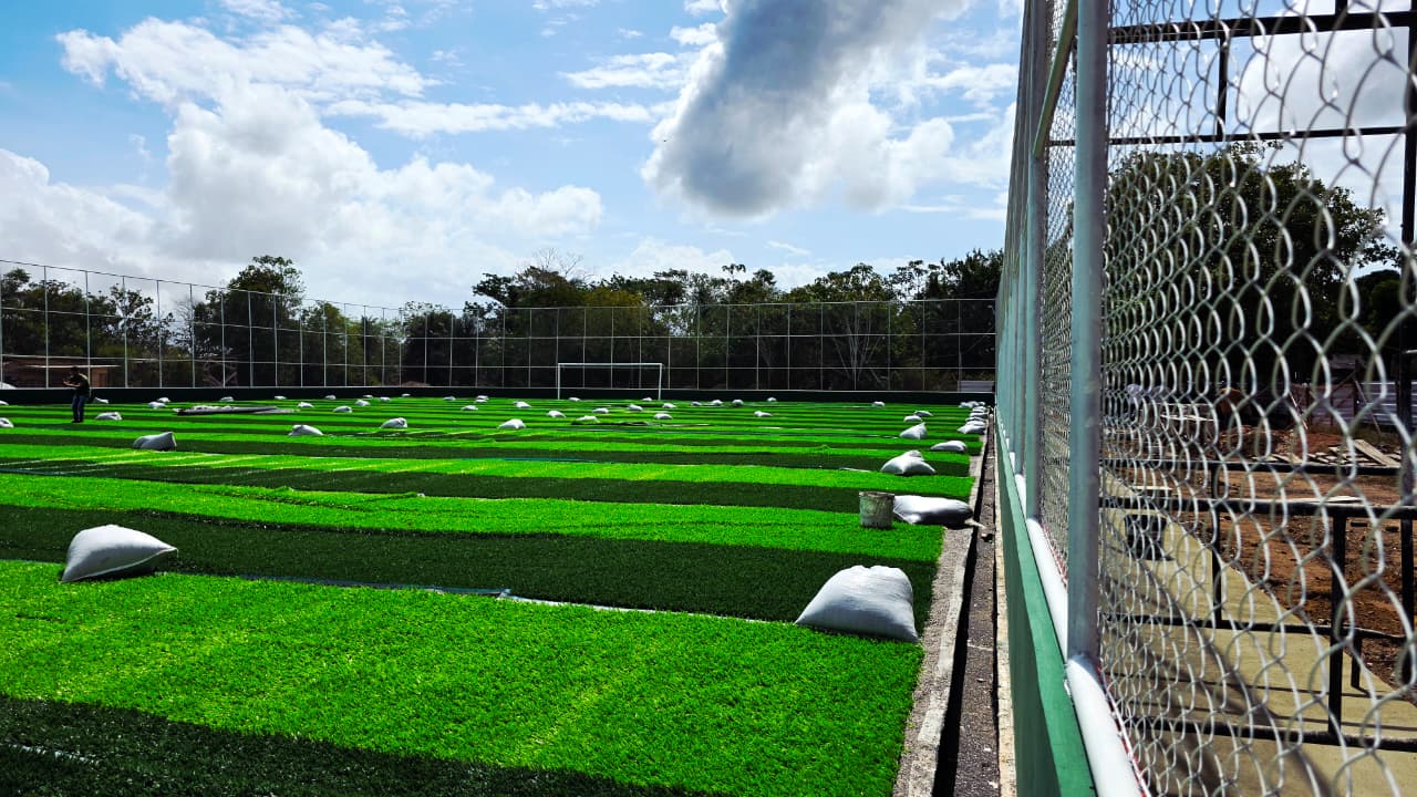 A obra contempla a implantação de um campo de futebol society, com área total de 2.650 metros quadrados. O campo terá dimensões de 60 por 40 metros, totalizando 2.404 metros quadrados, e contará com mureta em alvenaria, alambrado e calçada de proteção em todo o entorno, garantindo mais segurança e melhor estrutura para atletas e moradores.