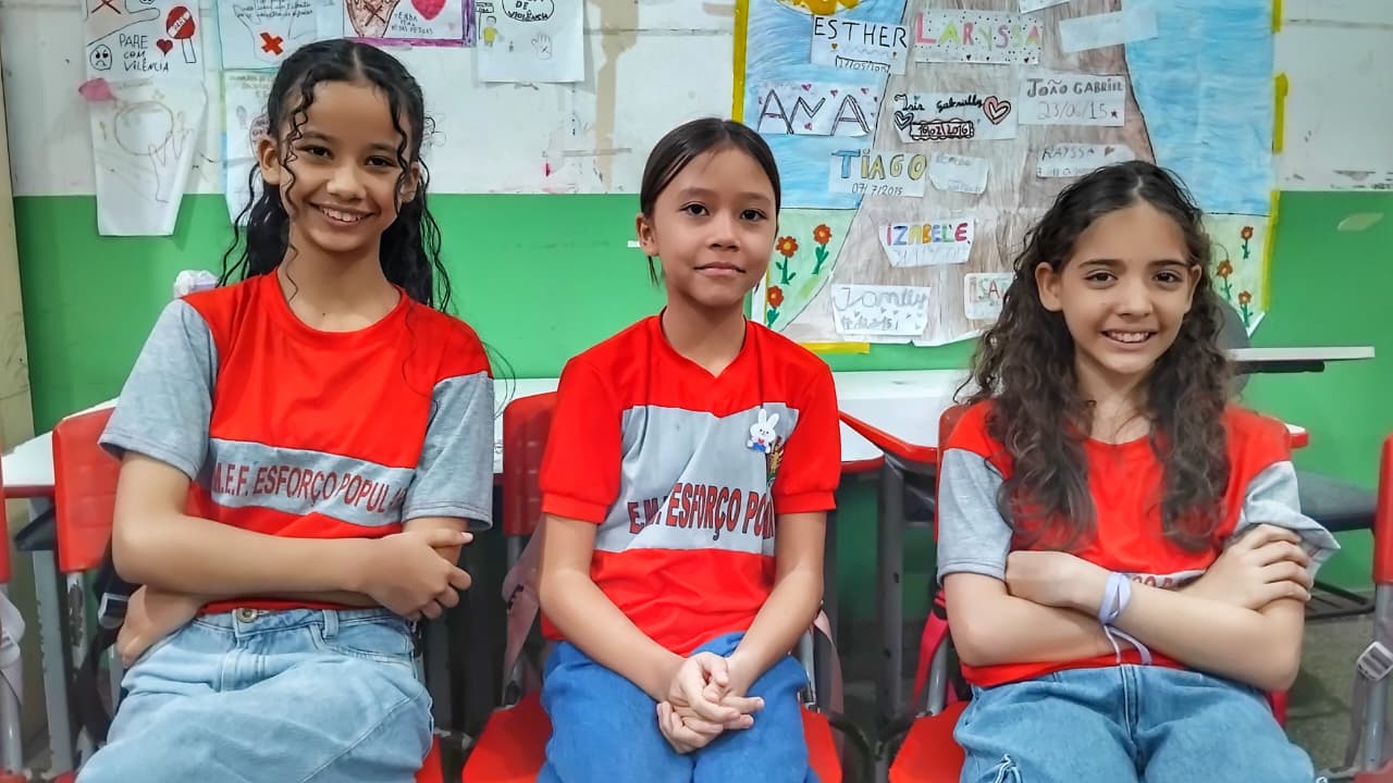 Alunos João Gabriel Barbosa, Sâmela Sara Vidigal e Kaik de Paula Ferreira | Foto: Héricles Gomes /PMM