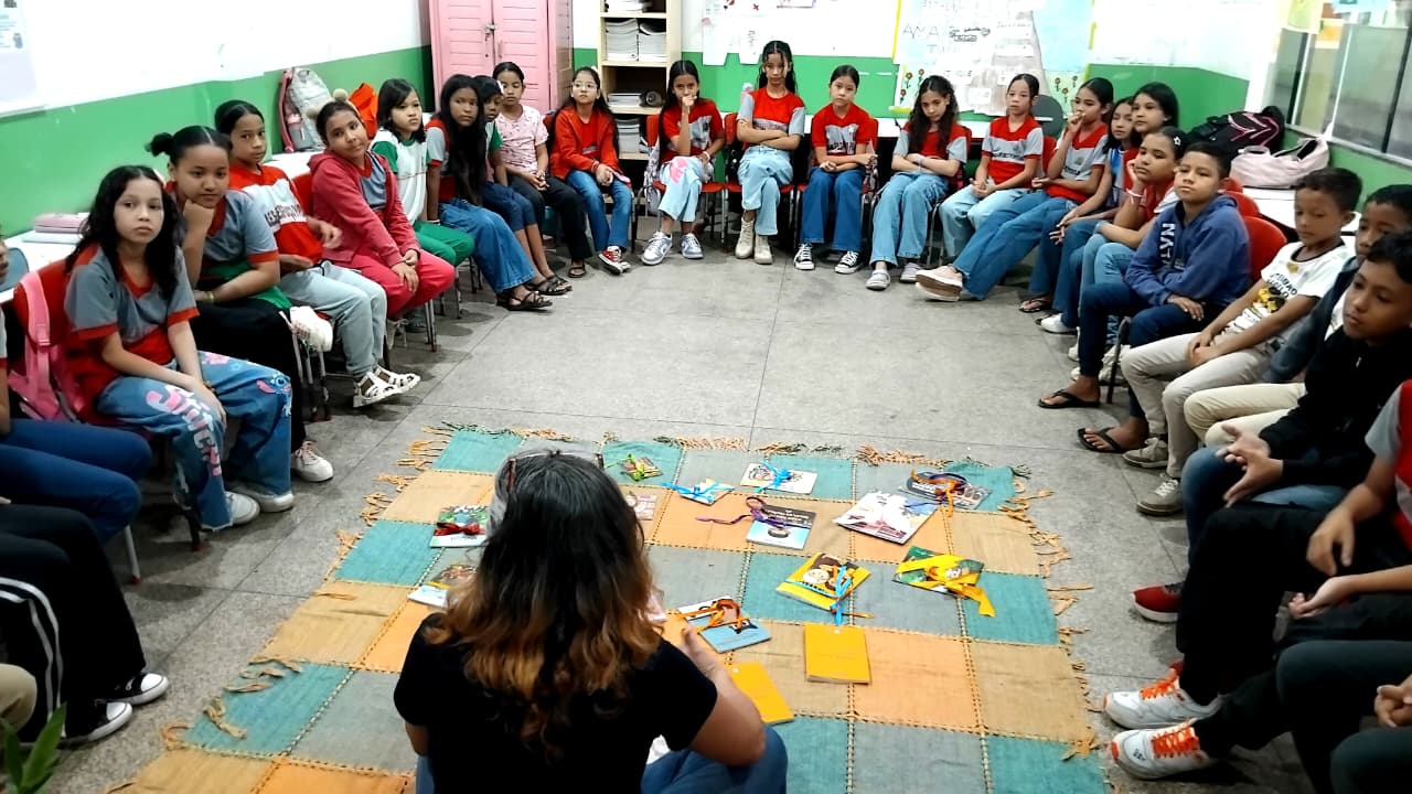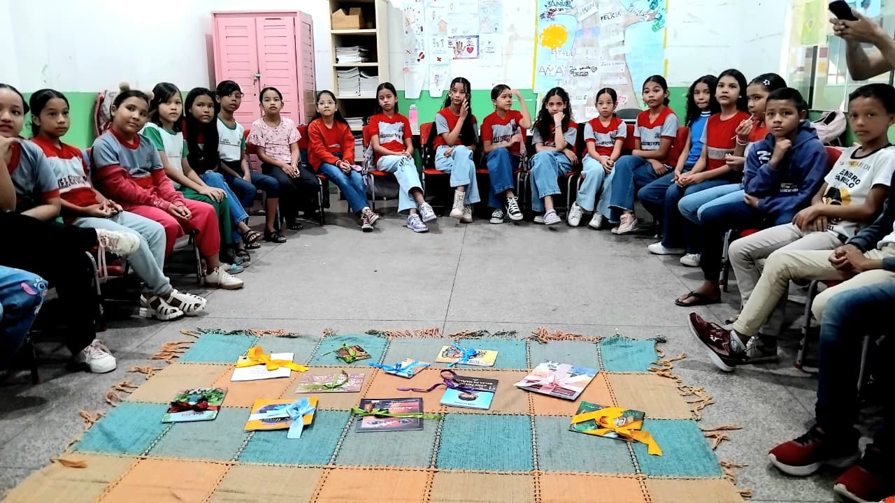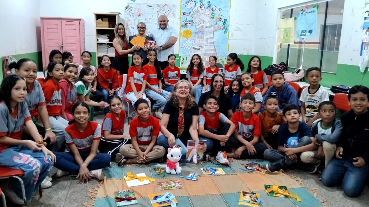 Durante a programação, a escritora apresentou aos alunos aproximadamente 30 obras da literatura infantojuvenil amapaense. O contato com os livros despertou a curiosidade das crianças, que demonstraram interesse em conhecer os autores mencionados, especialmente após a leitura de trechos das histórias.