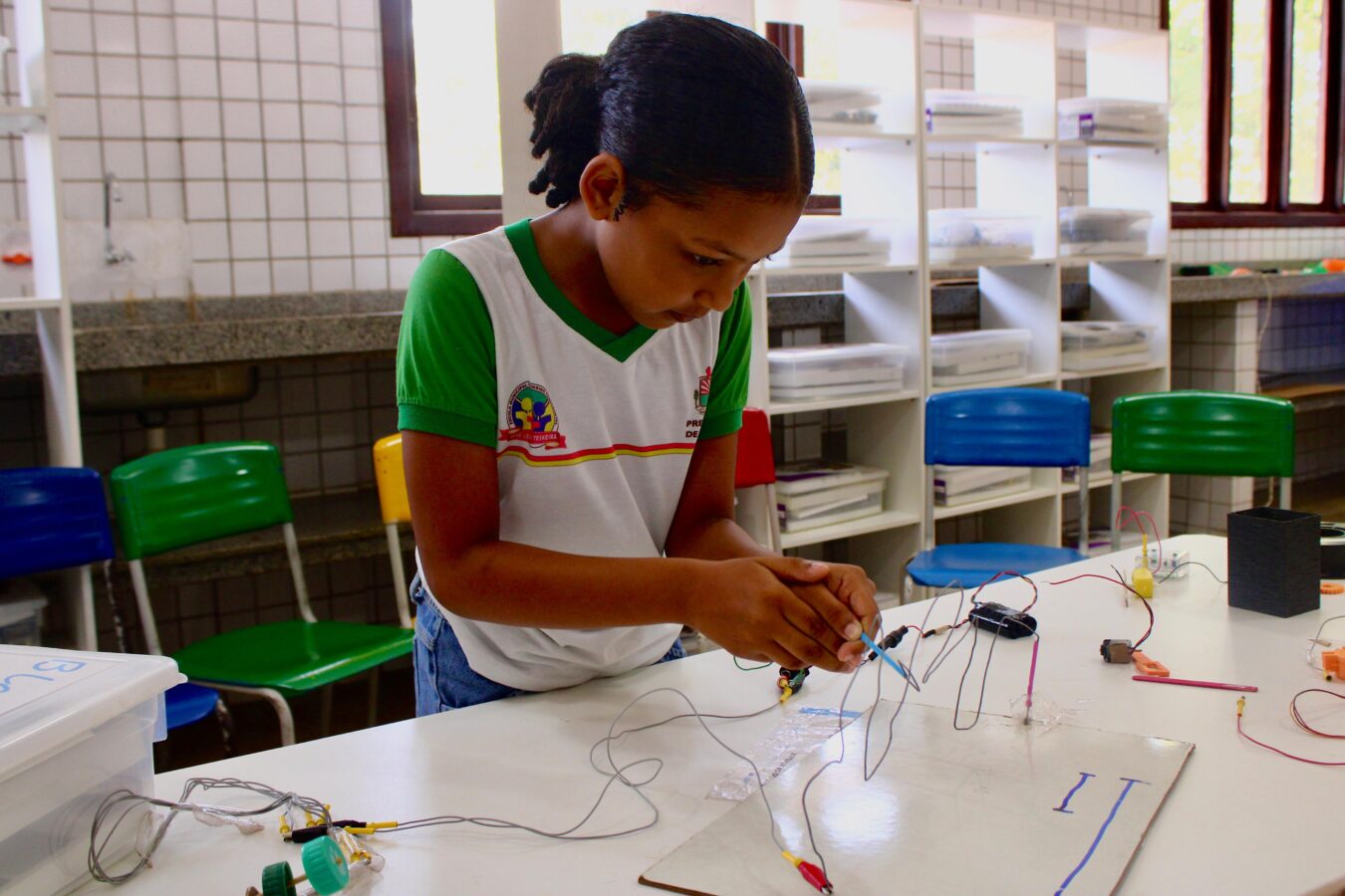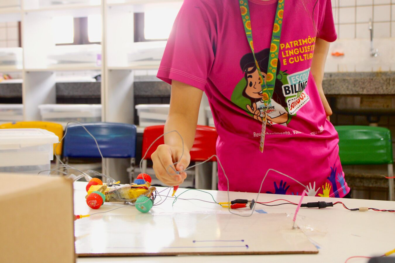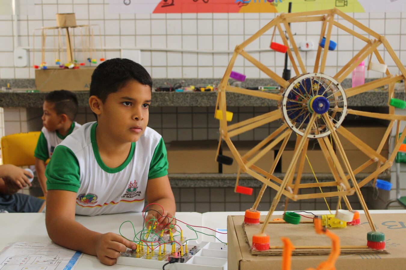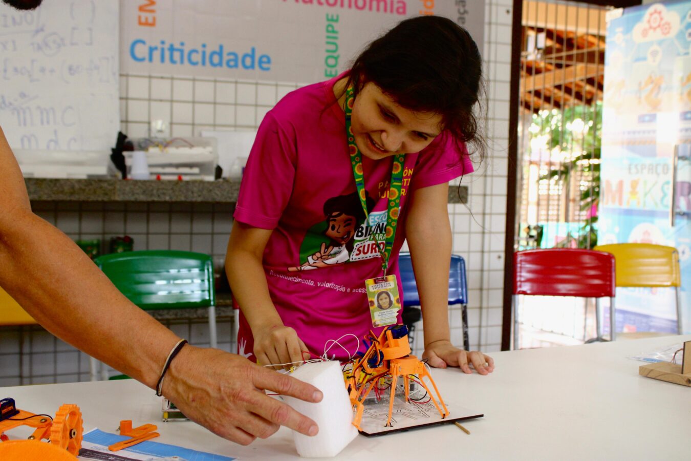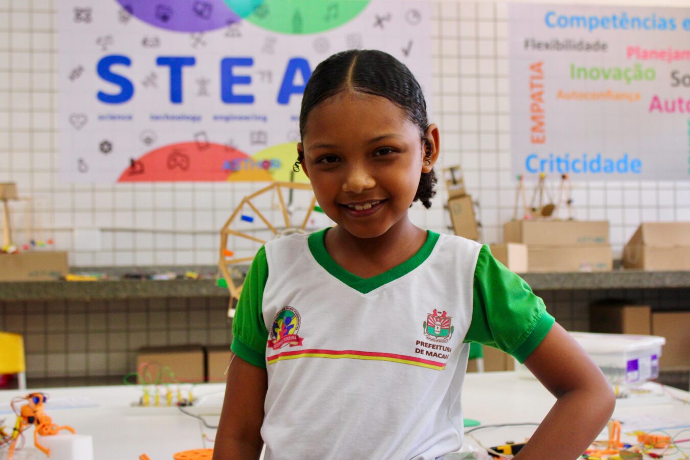 A aluna Wandrea Beatrice, de 9 anos, estudante do 3º ano, falou com entusiasmo sobre a experiência. “É muito bacana estudar nessa sala. Eu amo! Ajudei a construir a roda-gigante e o carrossel. Foi incrível ver o resultado”, contou empolgada.