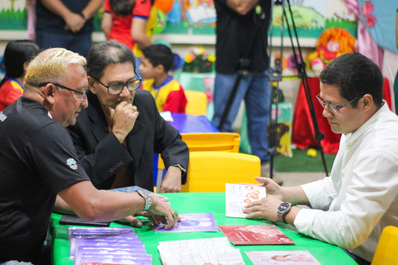 Secretário municipal de educação, Madson Millor trocou ideias sobre literatura com os escritores Jack Corrêa e José Pastana | Foto: Emanelle Gomes /PMM