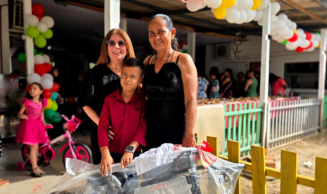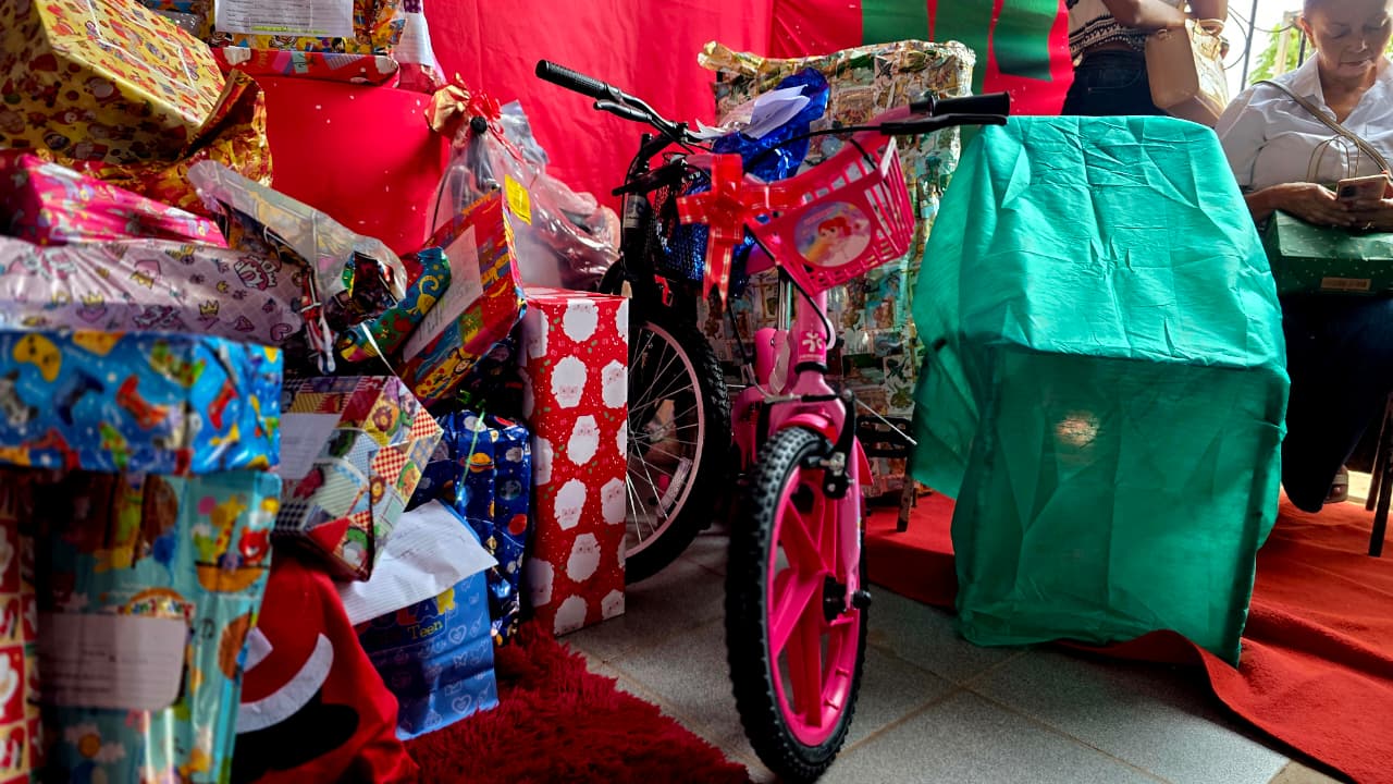 A alegria das crianças foi um dos pontos altos da programação. O estudante Kauã Arthur, de 8 anos, recebeu uma bicicleta e não escondeu a felicidade. “Eu escrevi pro Papai Noel e ele atendeu meu pedido. Nossa! Estou muito feliz mesmo”, contou o garoto, ao lado da mãe, Maria de Lurdes Santos, de 59 anos.