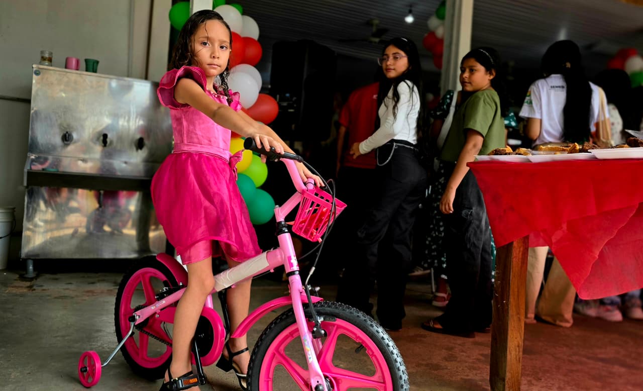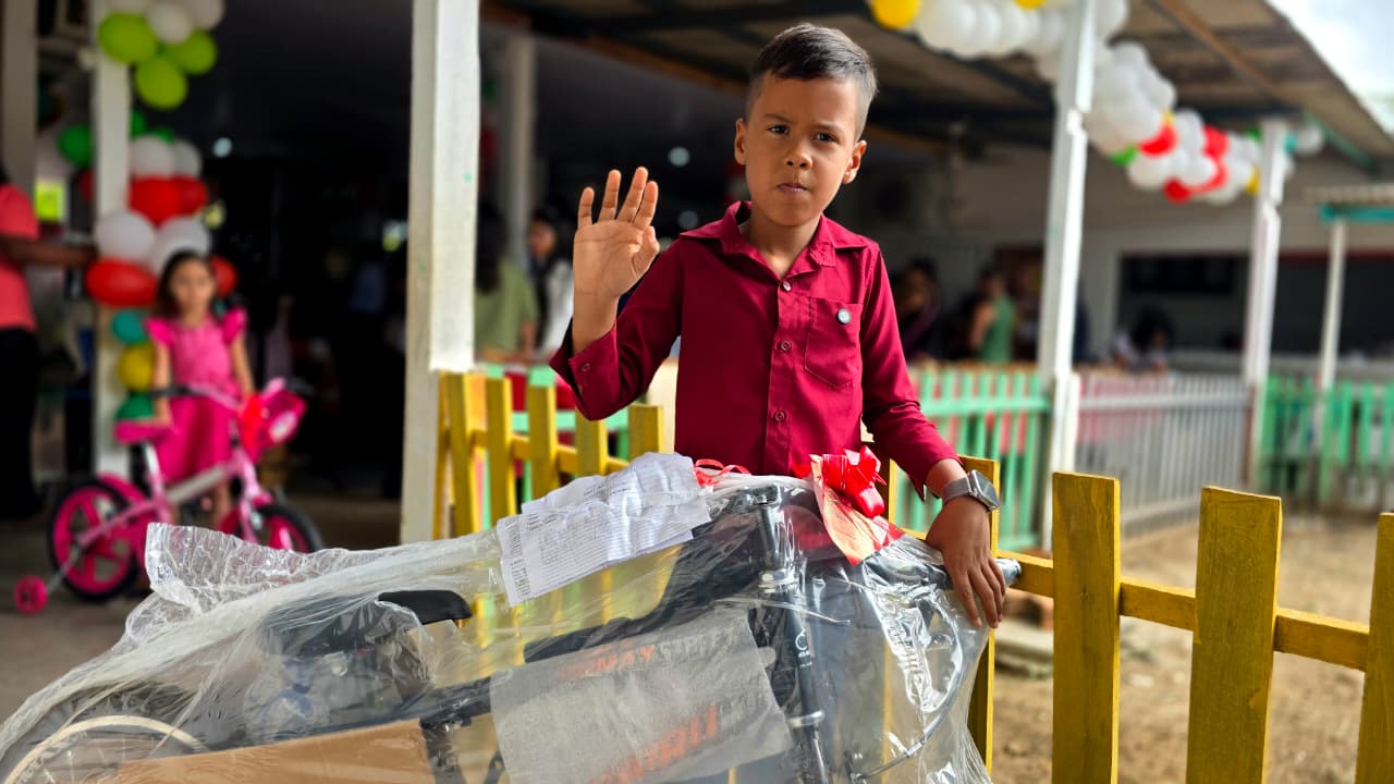 A estudante Sulliany Silva, de 6 anos, do 1º ano do ensino fundamental, também foi contemplada com uma bicicleta, reforçando o impacto positivo da ação para os alunos.