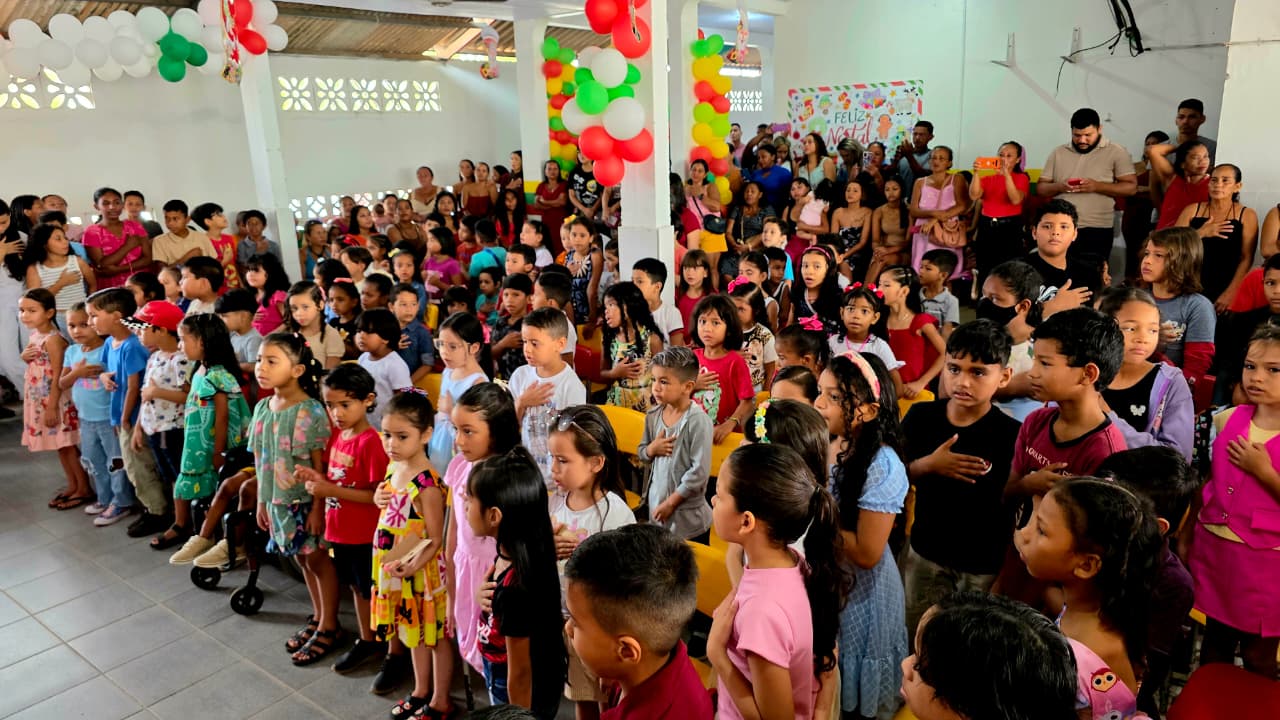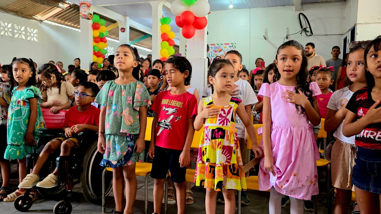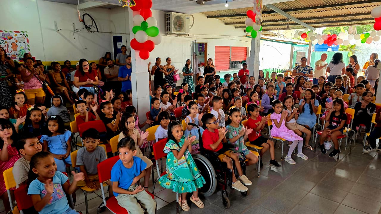 A Escola Municipal Maria Izabel Fernandes Ribeiro, localizada na Zona Norte de Macapá, encerrou o ano letivo nesta sexta-feira (19) com um momento marcado por emoção, solidariedade e alegria. A unidade escolar realizou a entrega de presentes da campanha Papai Noel dos Correios aos estudantes que escreveram cartinhas ao Bom Velhinho, mobilizando voluntários e parceiros para tornar o natal das crianças ainda mais especial.