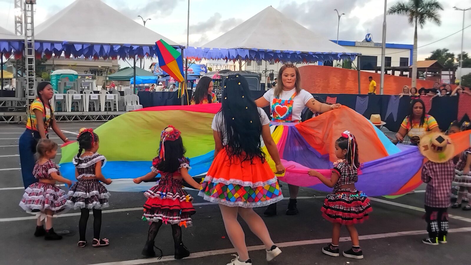 “A gente se sente muito feliz trazendo as crianças para o Arraiá, porque elas não estão só participando, elas estão felizes pela apresentação, e vêm com muita empolgação se apresentarem nesta noite”, enfatizou Rafaele Flexa, coordenadora pedagógica da escola Professora Neusona.