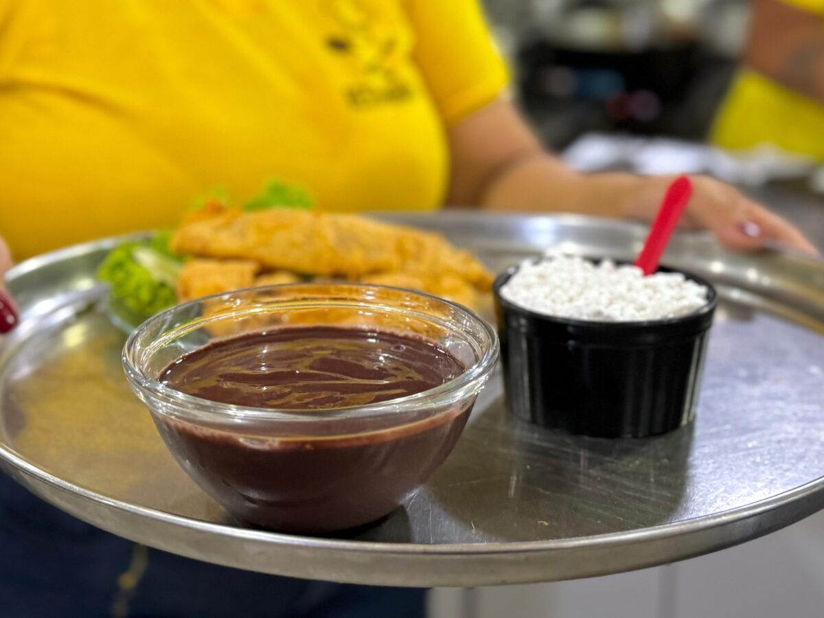 Peixe frito com açaí | Foto: Bruna Pinheiro/PMM
