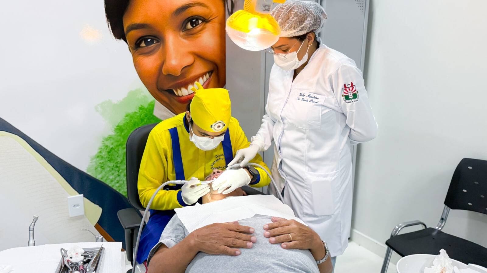 A ação ofereceu atendimento odontológico sem necessidade de agendamento, incluindo serviços como limpeza, raspagem, restauração, extração dentária, encaminhamentos para tratamento especializado e entrega de kits de higiene bucal. O atendimento foi prestado por uma equipe formada por 10 dentistas e 10 auxiliares de saúde bucal, preparada para atender de forma ágil e qualificada.