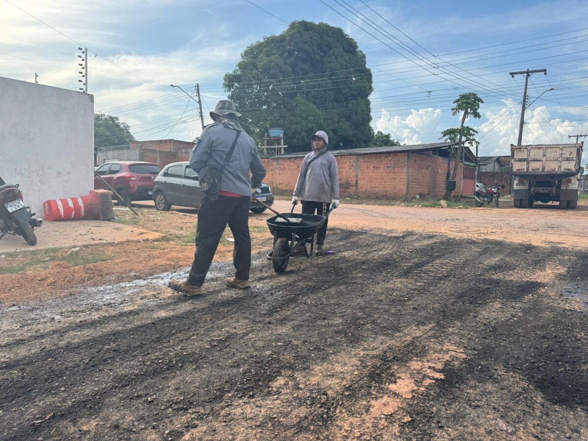 Pavimentação da Rua Raimunda Rodrigues Capiberibe | Foto: Claudia Tamires/PMM