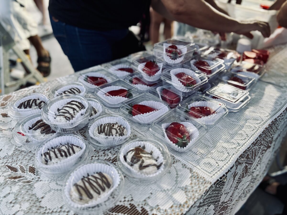 A grande novidade da edição foi a Tenda do Morango do Amor, que rapidamente se tornou o ponto mais disputado da feira. O doce, feito com morangos frescos cobertos por uma camada crocante de caramelo e recheio de brigadeiro de ninho, conquistou os visitantes e formou filas durante toda a noite.