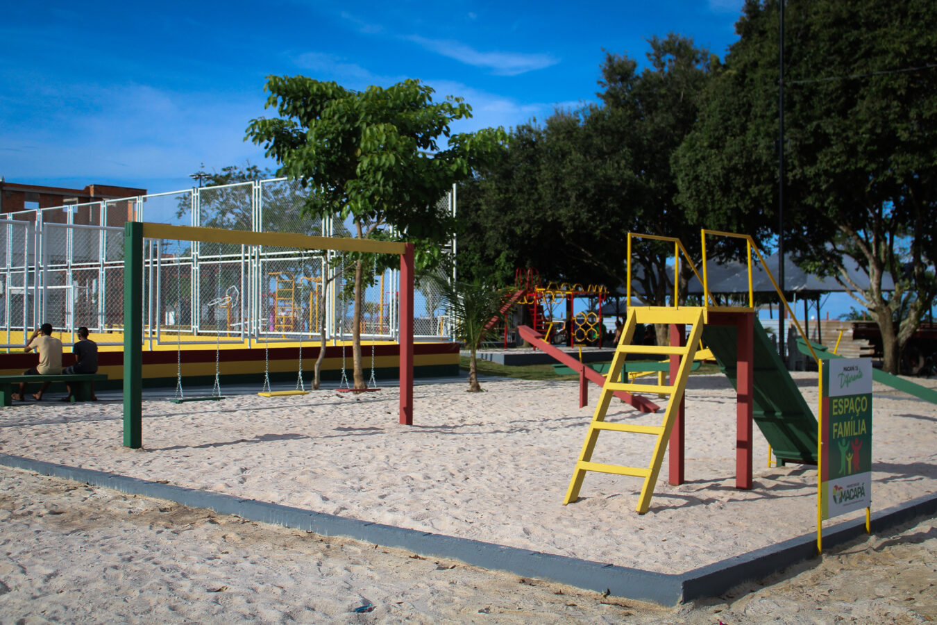 O Espaço Família é equipado com balanços, gangorras, escorregador, mesas de dominó, xadrez, futmesa e pingue-pongue.