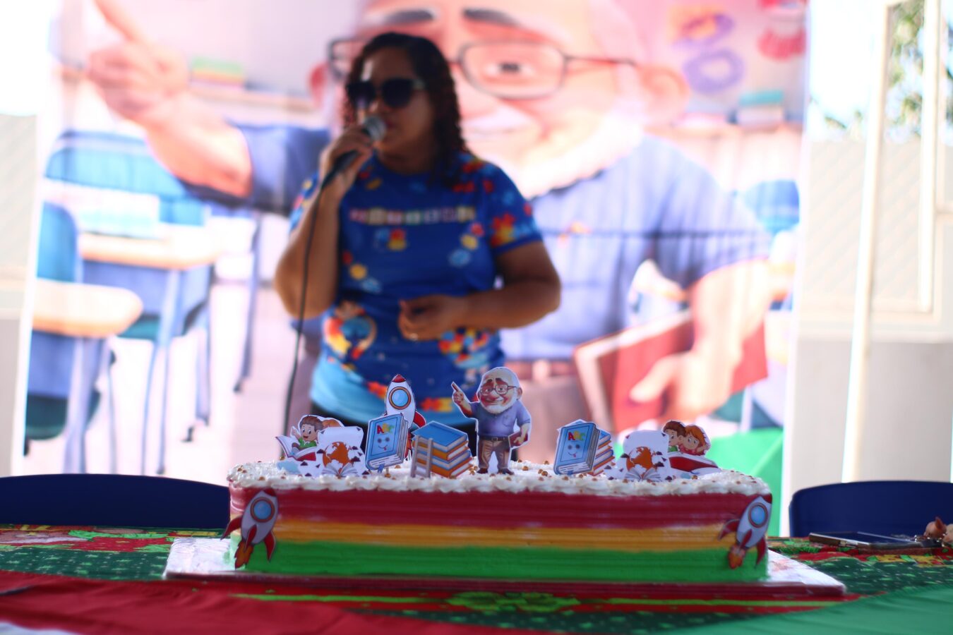 A vereadora Maraína Martins, filha do professor Bigú, falou da emoção de comemorar o primeiro ano da unidade escolar que homenageia seu pai.