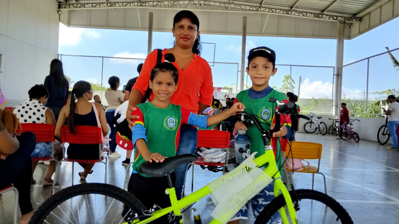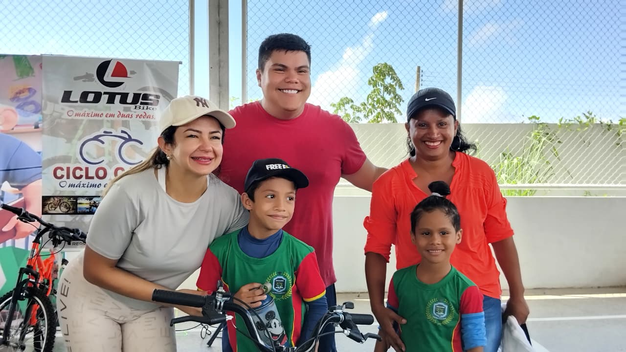 Dentro da programação, foram sorteadas duas bicicletas entre os participantes. O aluno Miguel Adaelson, de 6 anos, foi um dos ganhadores e estava muito feliz. Sua mãe, Márcia Neris, de 42 anos, contou que a bicicleta que o filho tinha estava muito velha e já não servia mais para ele.