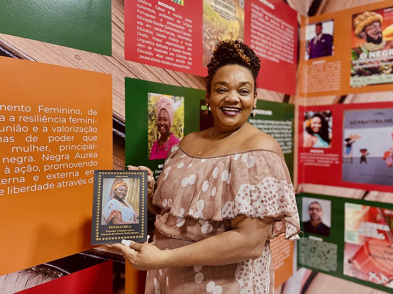“Divulgar o nosso trabalho é dar vida às nossas histórias. Durante muito tempo, mulheres negras escreveram sem serem lidas, sem serem vistas. Ter meus livros aqui é dizer que nossas vozes importam, que nossas vivências merecem ser contadas e compartilhadas com orgulho”, diz, emocionada, ao ver seus livros expostos em espaço público dedicado à negritude.