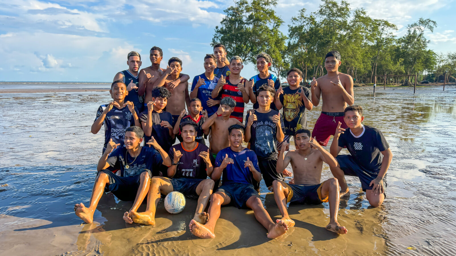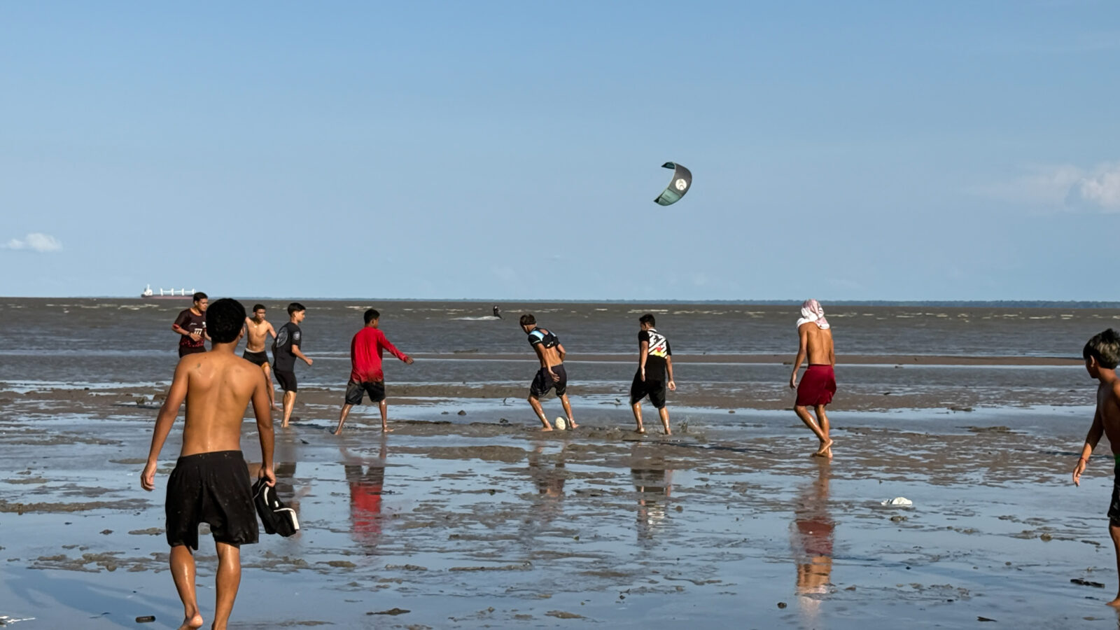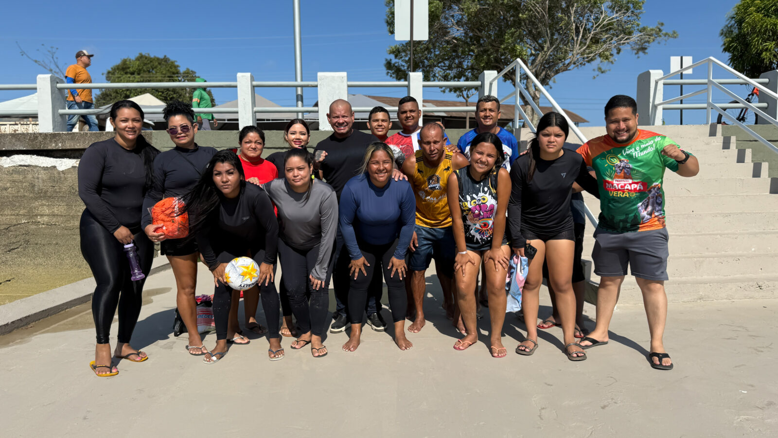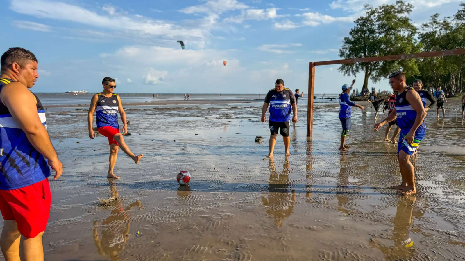 Moradores praticam futlama na orla do Perpétuo Socorro | Foto: Jesiel Braga/PMM