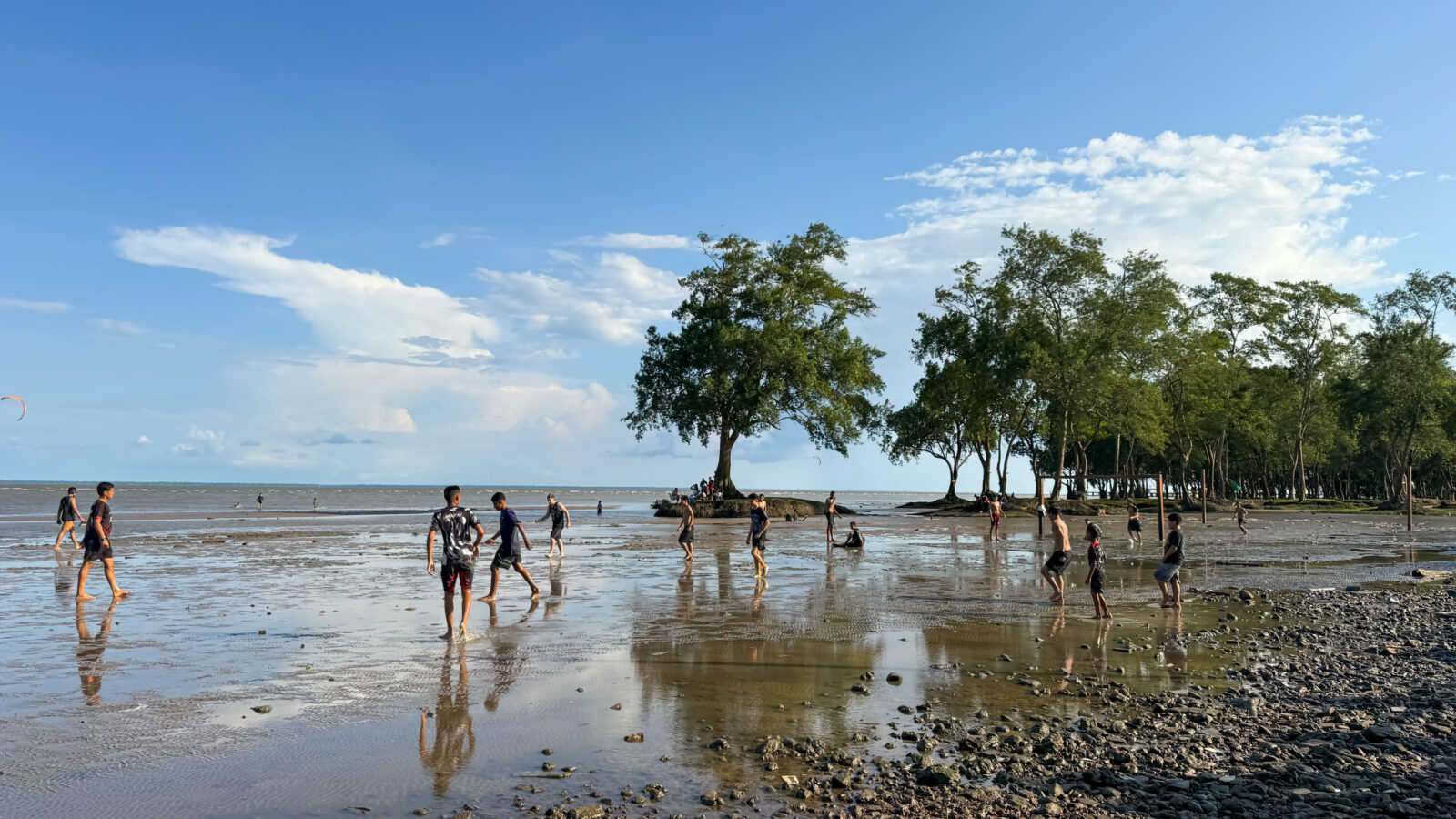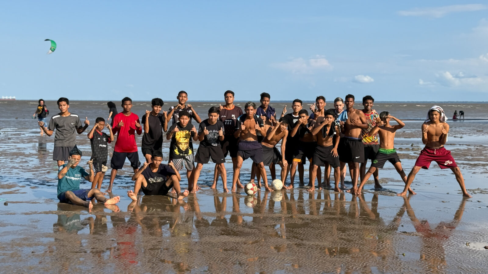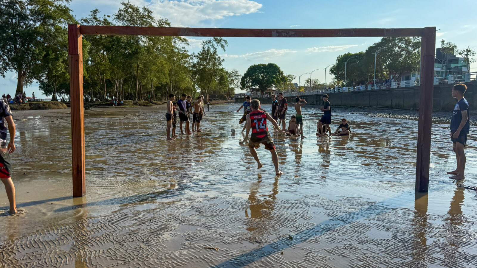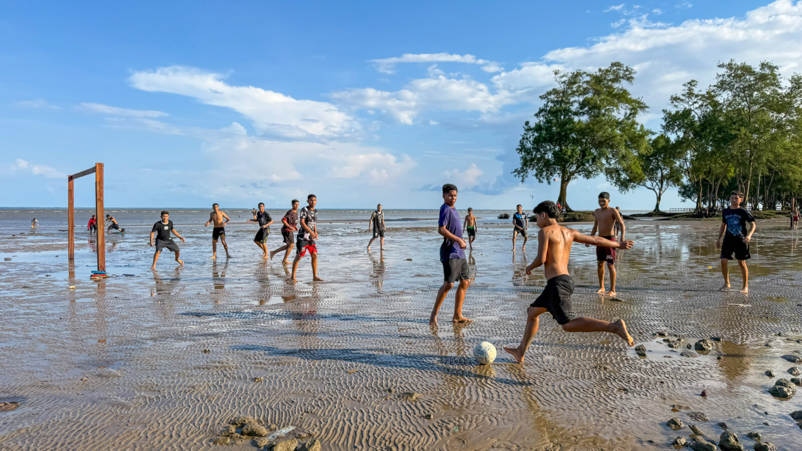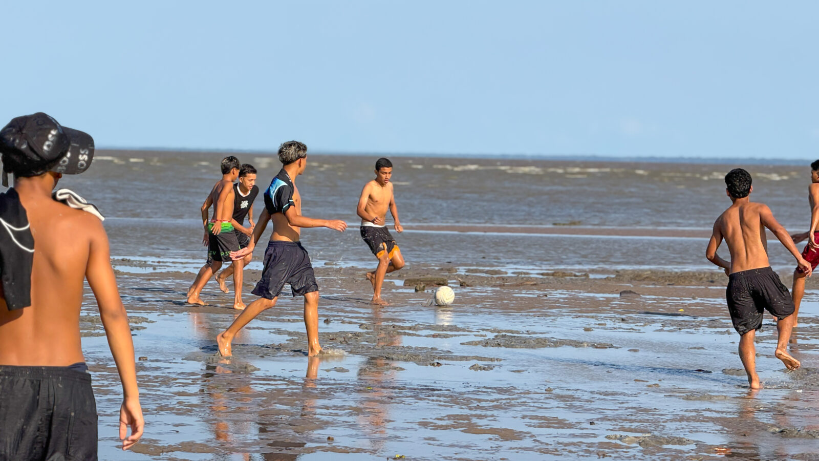 Moradores praticam futlama na orla do Perpétuo Socorro | Foto: Jesiel Braga/PMM