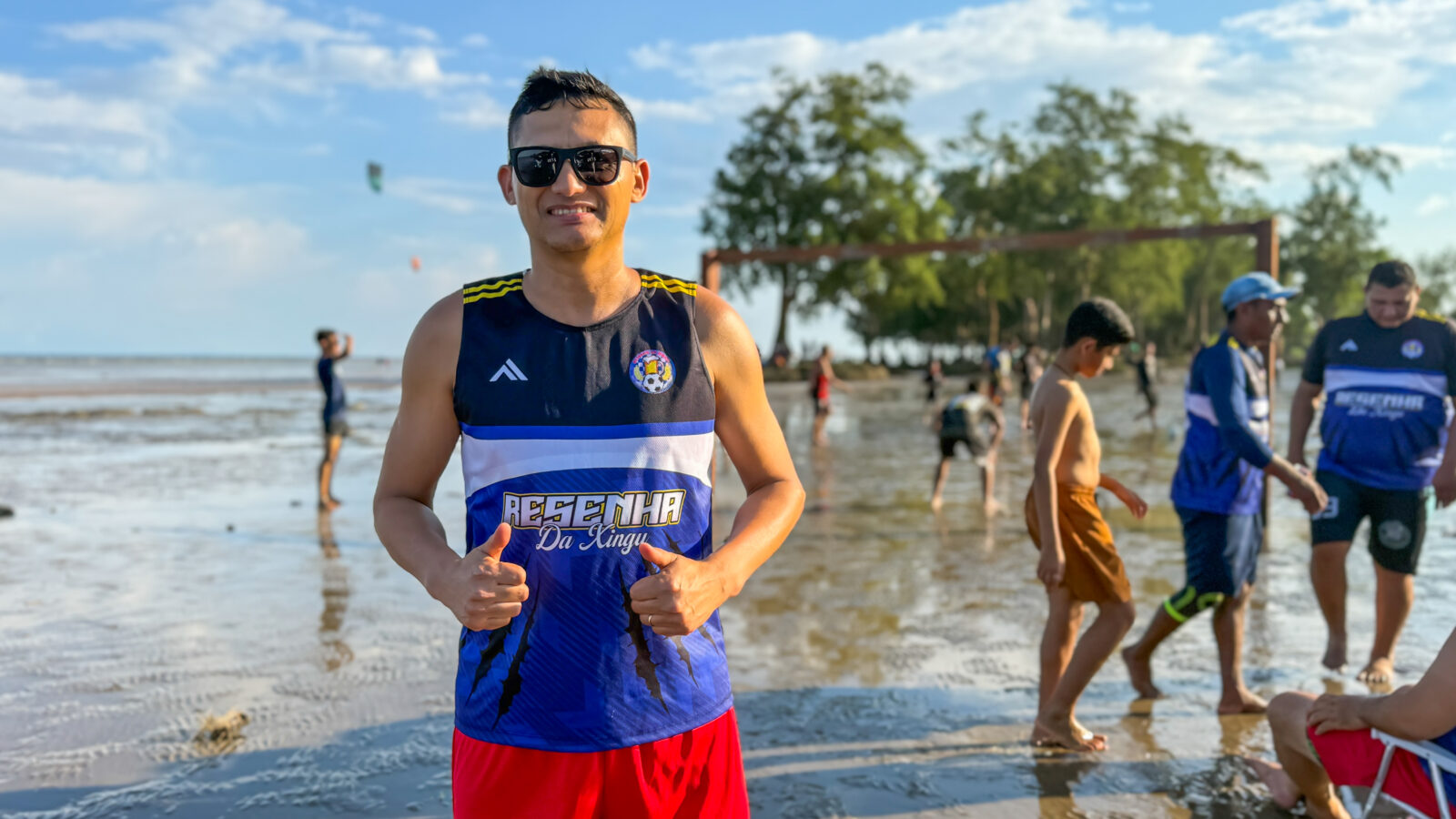 José Augusto da Paixão Saraiva, de 41 anos, morador do bairro Perpétuo Socorro e presidente do clube Resenha do Xingu, fala sobre a importância do futlama para o espaço e celebra a entrega da orla.