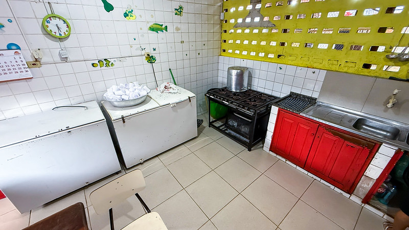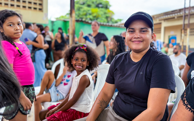 A manicure Cleonilma Santos, de 57 anos, moradora do bairro Pacoval há mais de 40 anos, estava com a neta Júlia Marya, de 7 anos. Ela relatou a alegria da menina ao saber que a escola seria reconstruída.