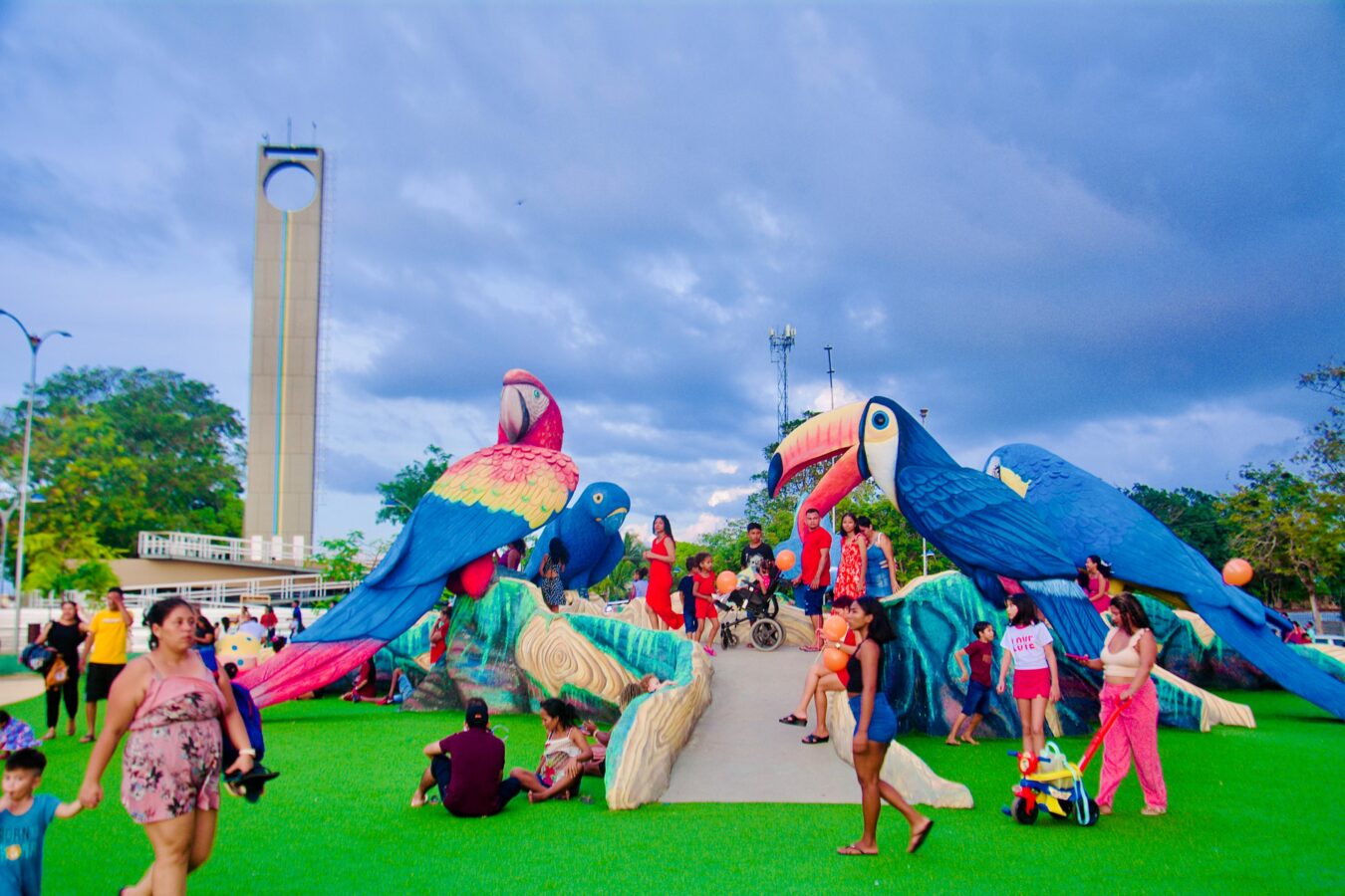Neste domingo (25), o Parque Meio do Mundo completou 1 ano de existência. Para celebrar a data, a Prefeitura de Macapá organizou uma programação especial que reuniu famílias e visitantes ao longo do dia. Entre as atrações estavam o DJ Adriano Neves, a apresentação da Palhaça Bíblica e sua trupe no Espaço Selvinha, voltado para as crianças, além da transmissão ao vivo do clássico entre Flamengo e Palmeiras.