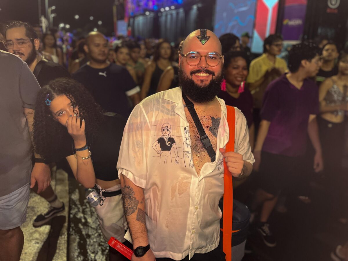 Entre os foliões estava a autônoma Tamara Souza, 29 anos, que veio de Belém especialmente para ver o artista, acompanhada do tio, o fisioterapeuta Cristian Castro, 50 anos. Fã declarada de Pedro Sampaio, Tamara não escondeu a emoção.