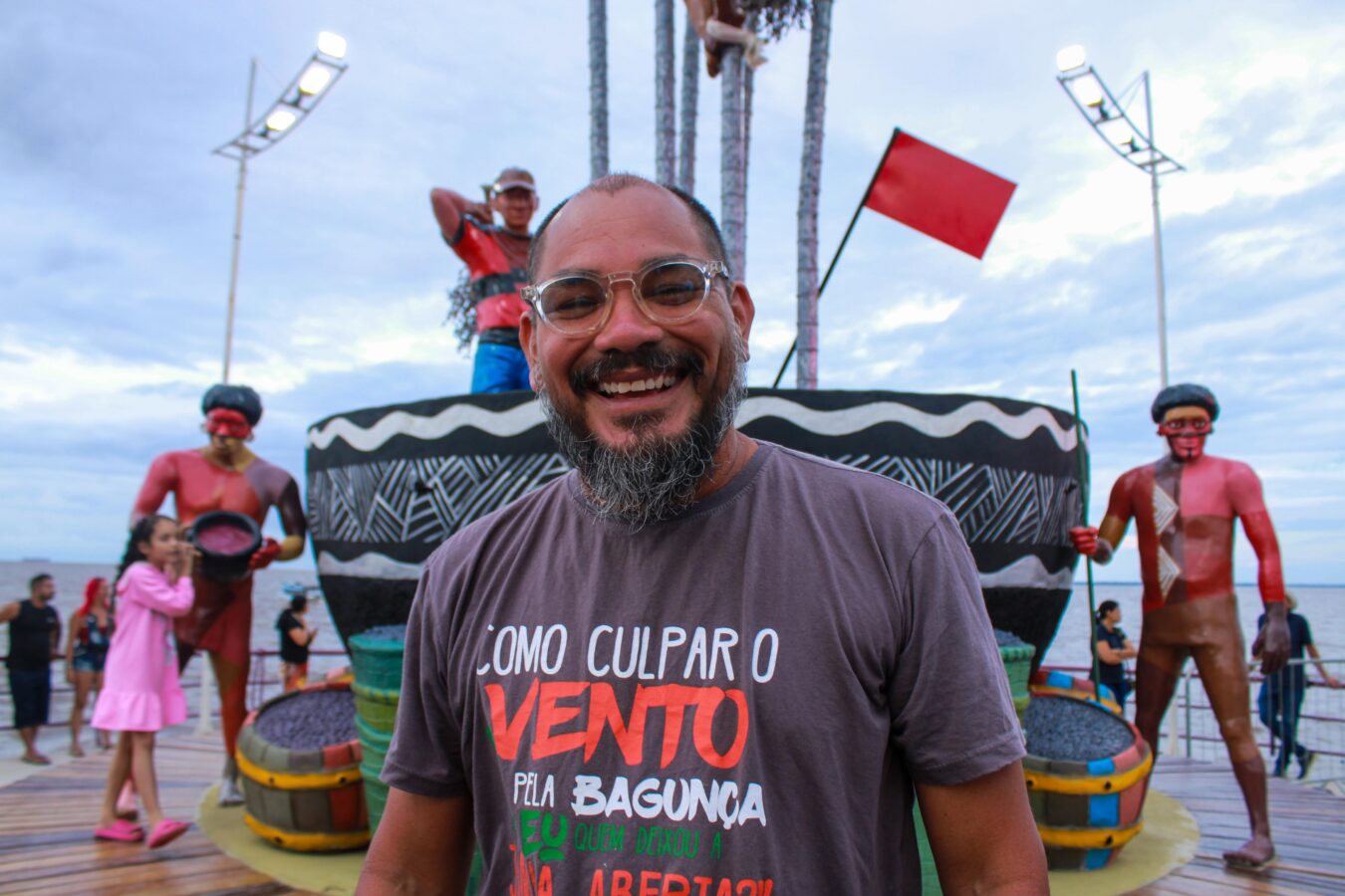 Em visita a Macapá, o turista chileno Jaime Arriagada conhece o Monumento Açaízal | Foto: Emanuelle Gomes/PMM