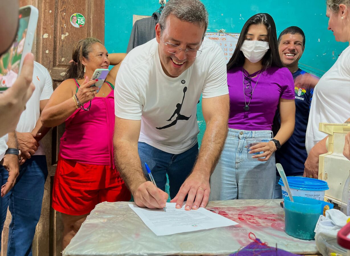 Dando continuidade à agenda, Dr. Furlan assinou uma ordem de serviço para a construção de 160 metros de passarela no bairro Jardim Marco Zero.