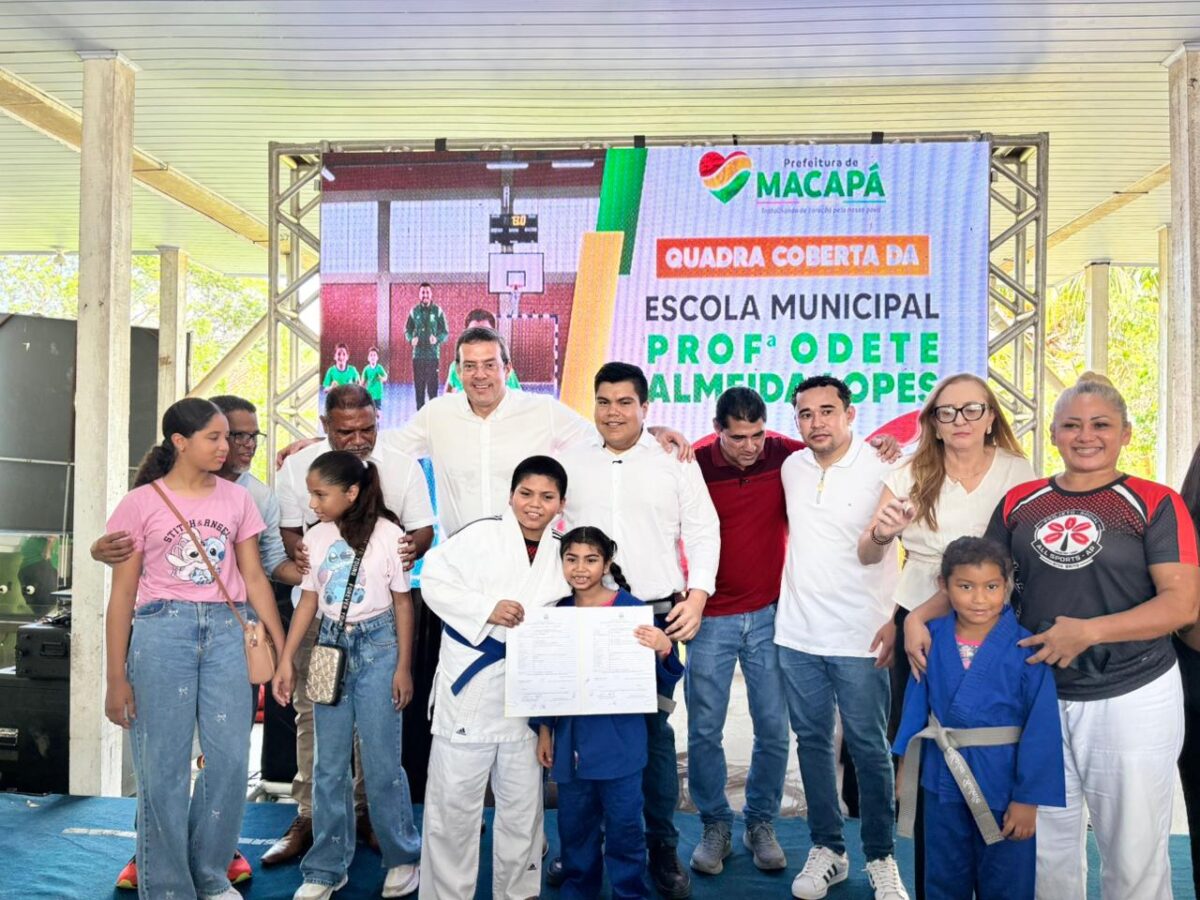 O prefeito de Macapá, Dr. Furlan, assinou nesta sexta-feira (9) a ordem de serviço para a construção da quadra coberta da Escola Municipal Professora Odete Almeida Lopes, localizada no bairro São Lázaro. A obra representa mais um investimento da Prefeitura na melhoria da infraestrutura educacional da capital.
