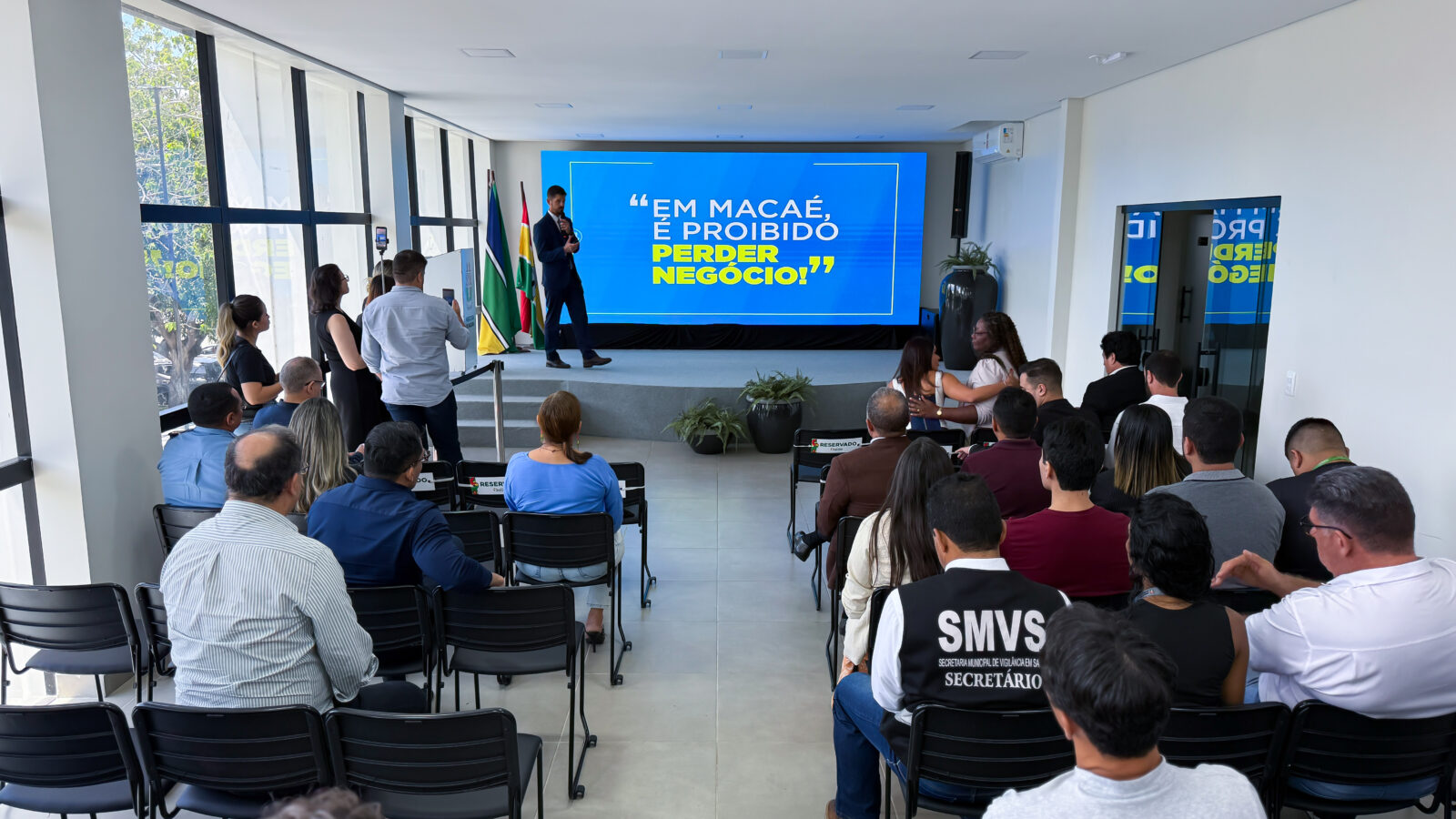 A cerimônia de sanção ocorreu no auditório do Palácio Laurindo Banha, durante o Encontro Técnico e Institucional que abriu a programação do dia e contou com a presença de uma comitiva de três vereadores de Macaé, Luciano Diniz, Ricardo Salgado e Leandra Lopes, que vieram participar de uma agenda de encontros, entre eles a sanção da lei. Os parlamentares também compartilharam suas experiências no setor petrolífero através de palestras.