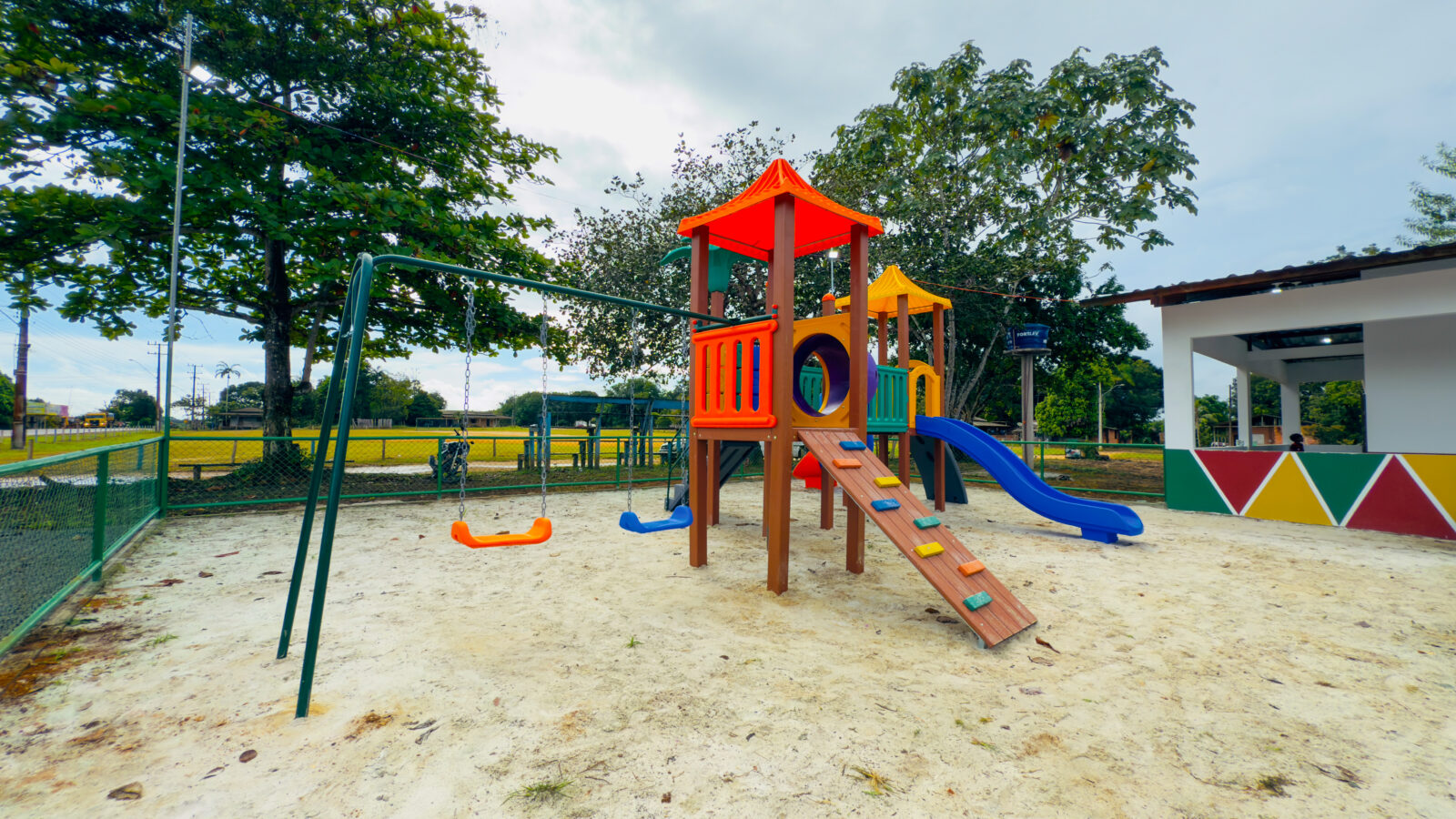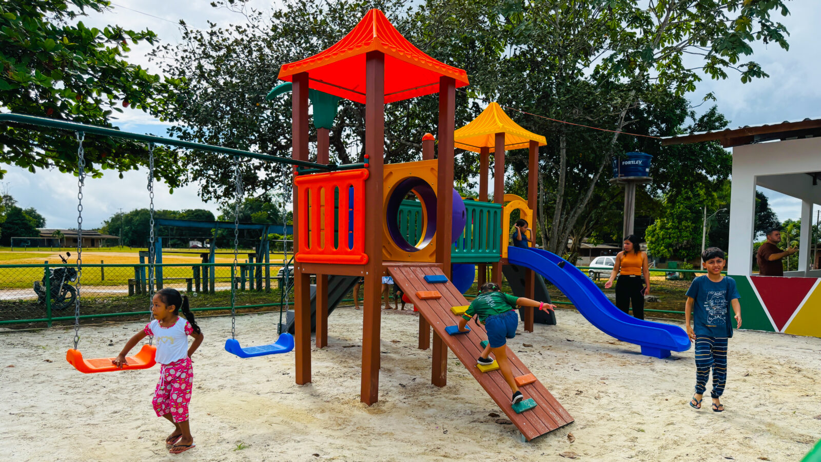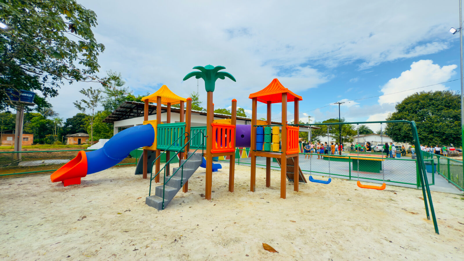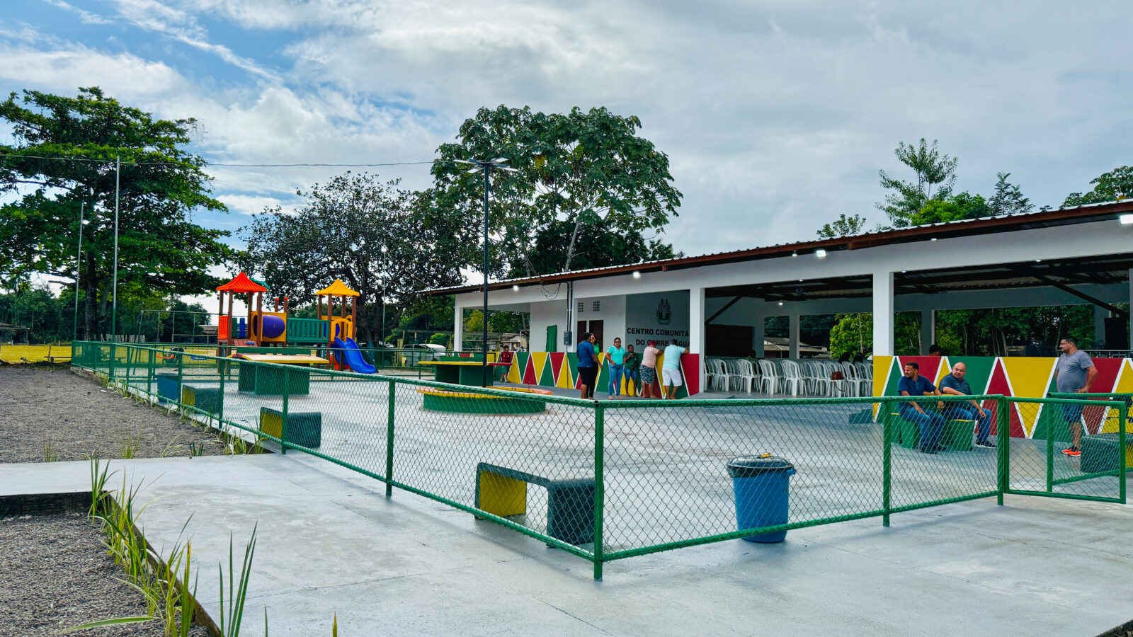 Além disso, a comunidade agora conta com uma nova estrutura do Espaço Família: uma área de playground equipada com brinquedos, como escorregadores, garantindo lazer e inclusão para as crianças.