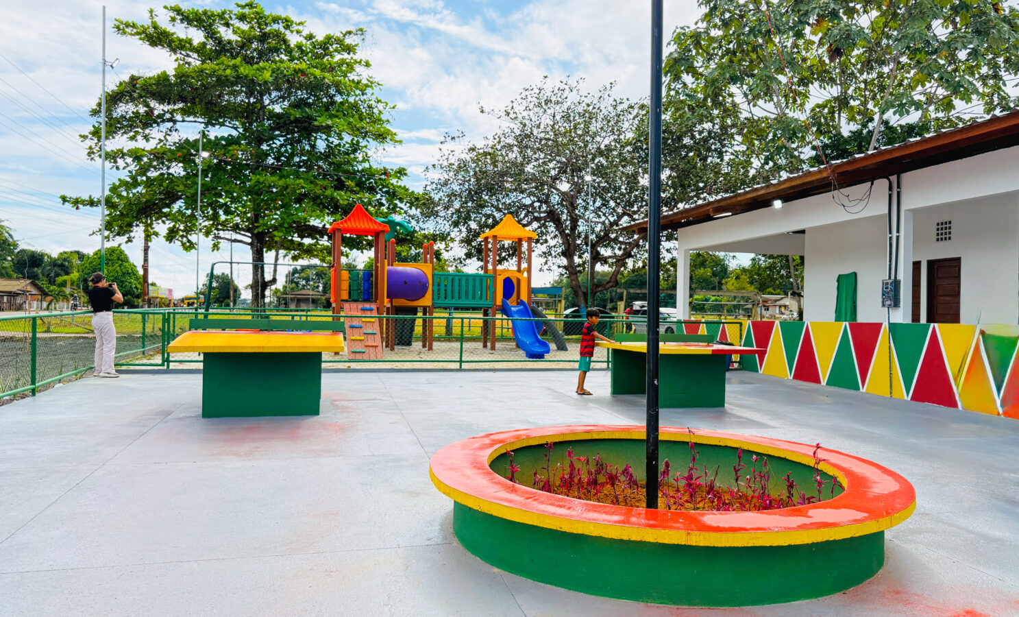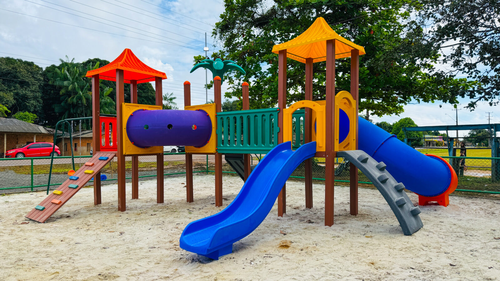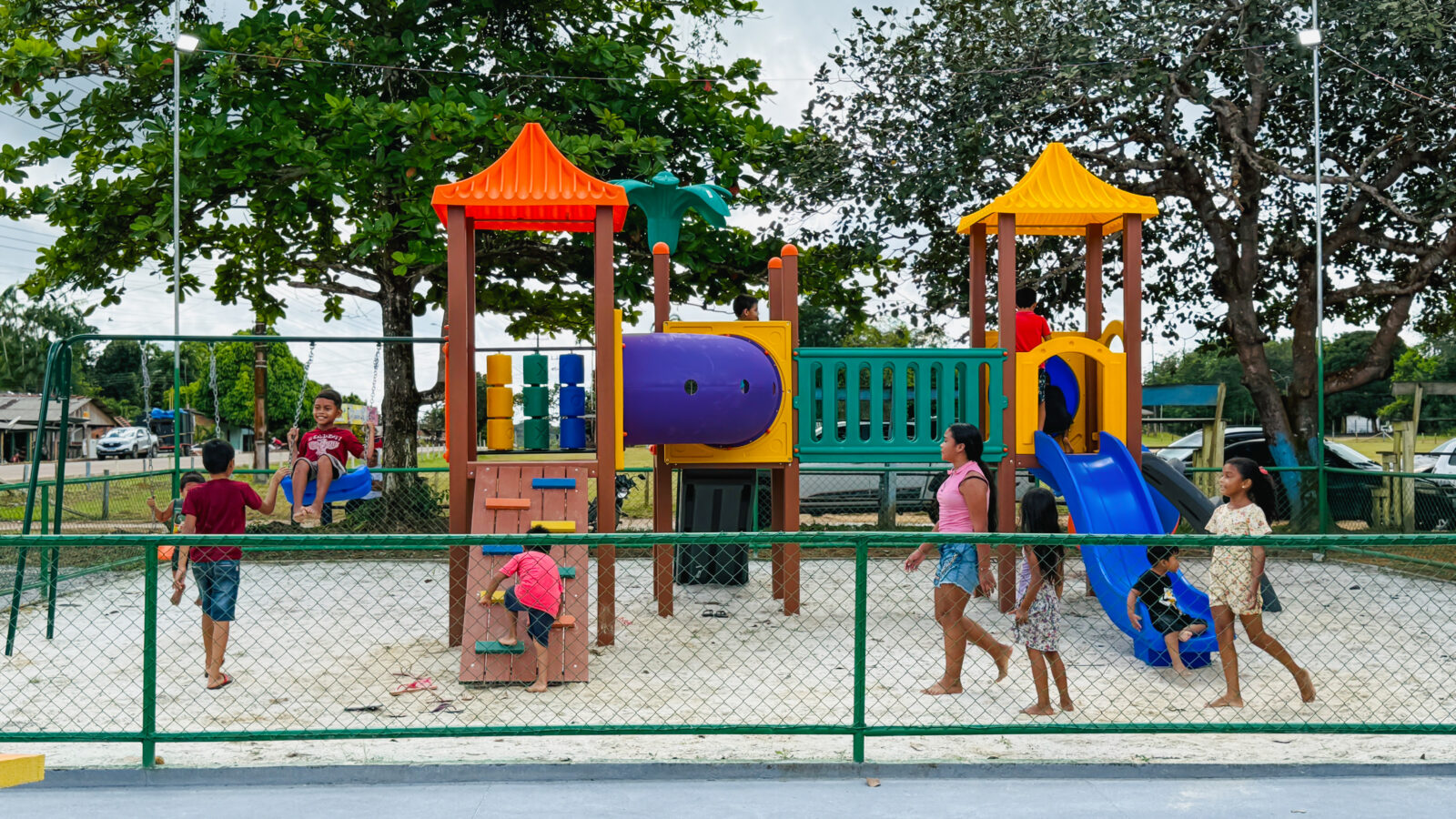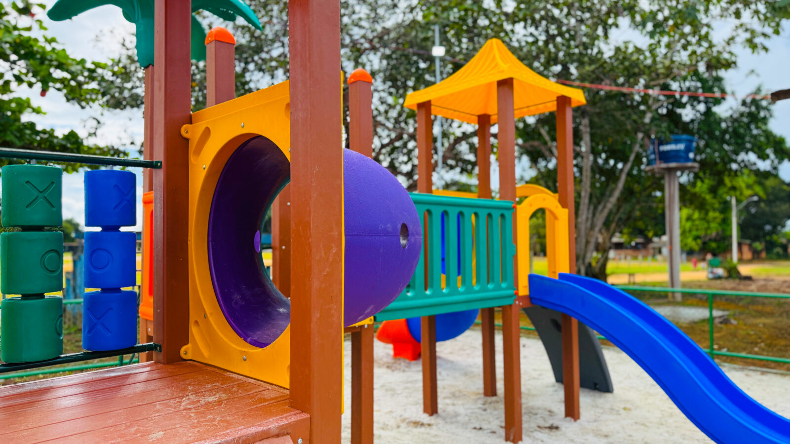 Além disso, a comunidade agora conta com uma nova estrutura do Espaço Família: uma área de playground equipada com brinquedos, como escorregadores, garantindo lazer e inclusão para as crianças.