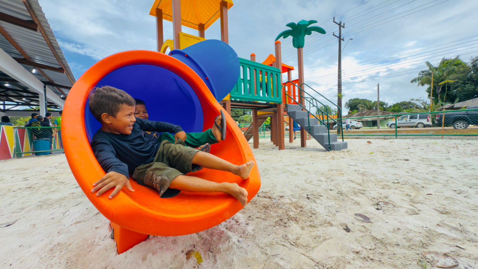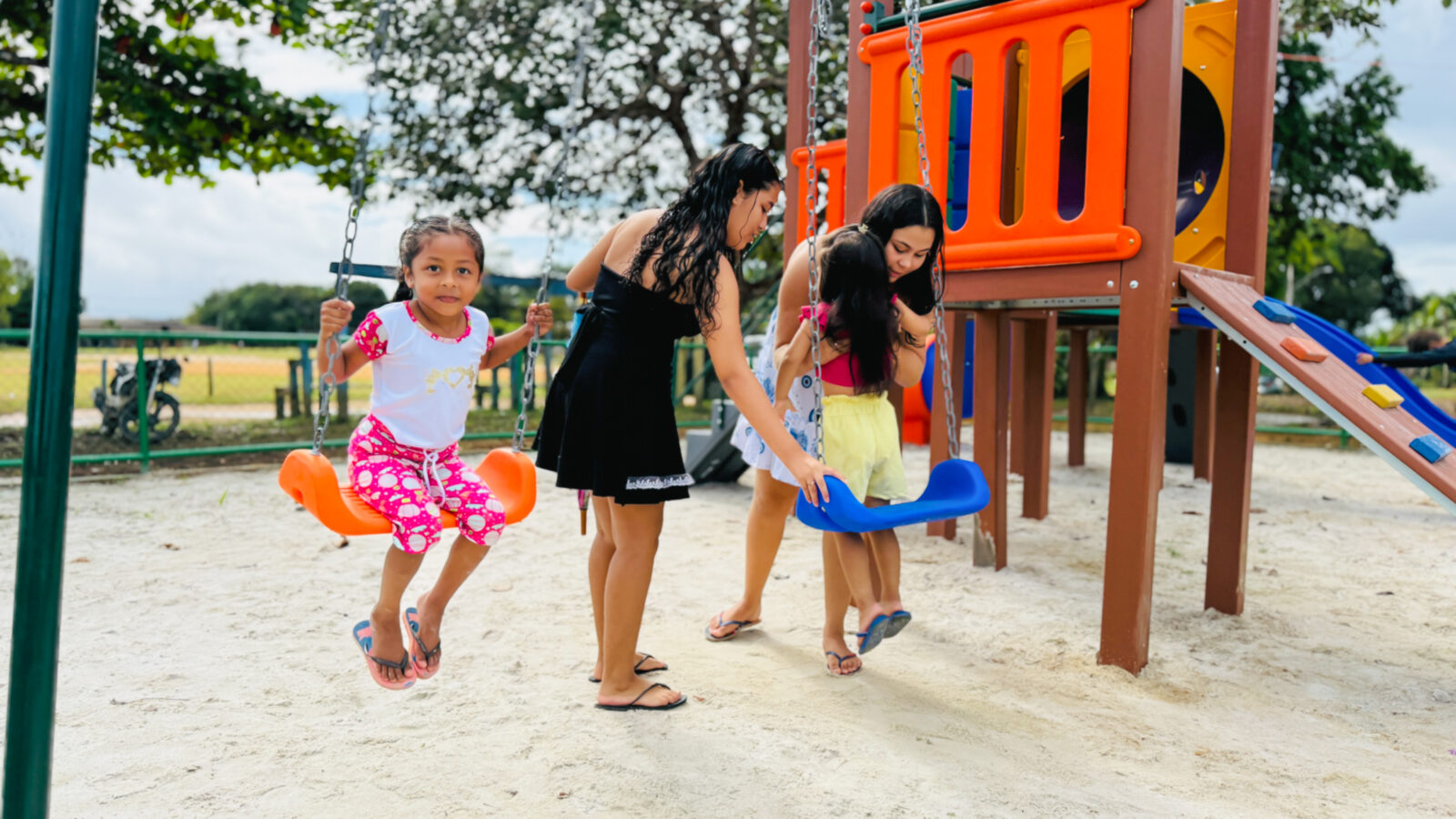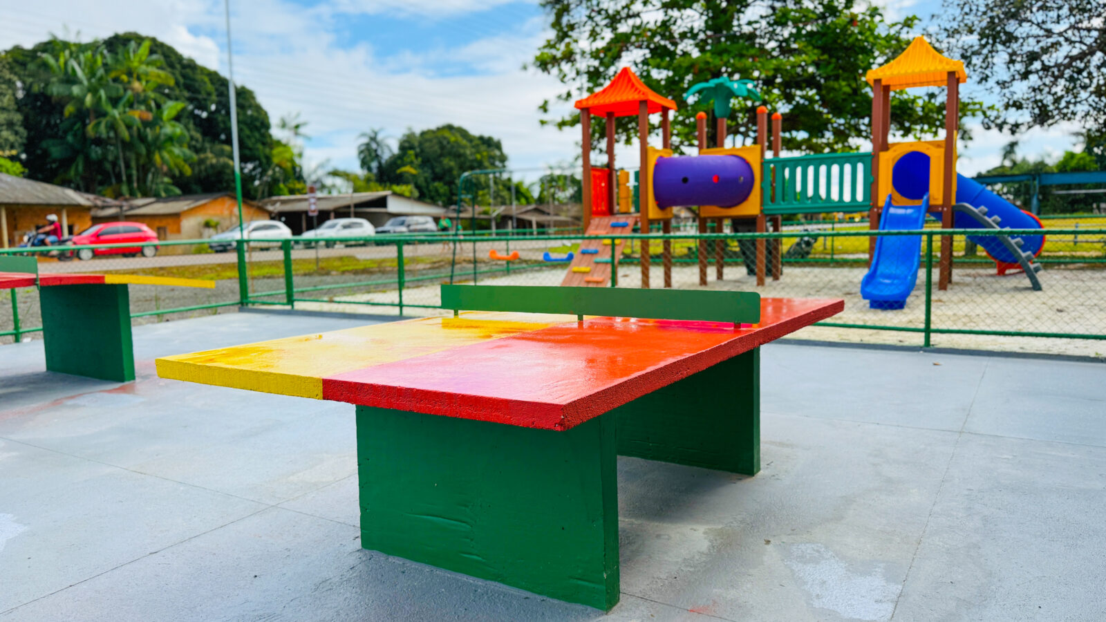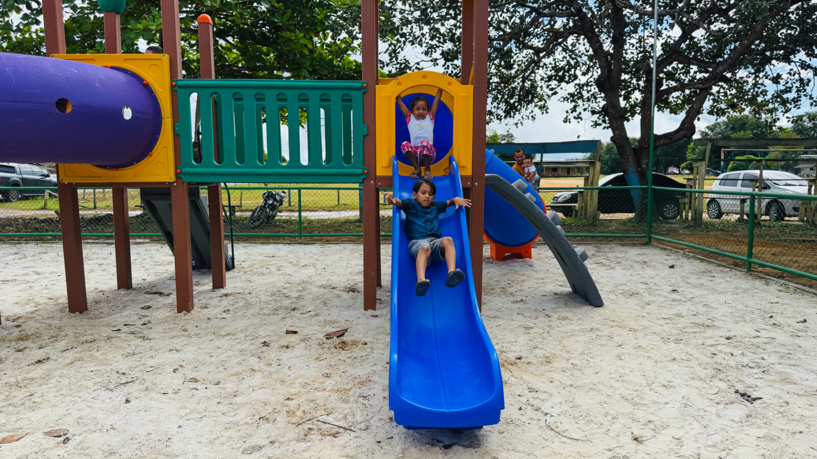 Além disso, a comunidade agora conta com uma nova estrutura do Espaço Família: uma área de playground equipada com brinquedos, como escorregadores, garantindo lazer e inclusão para as crianças.
