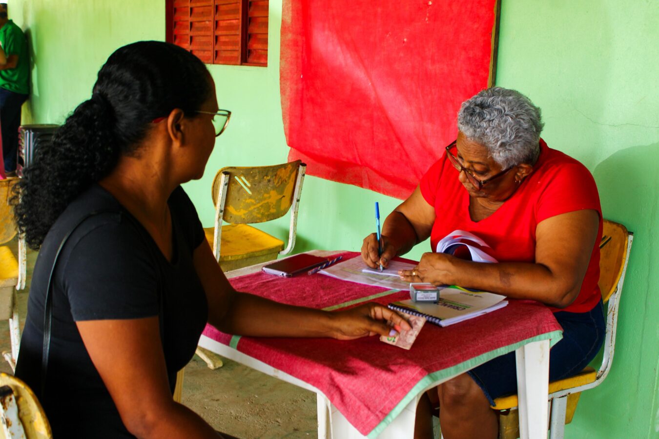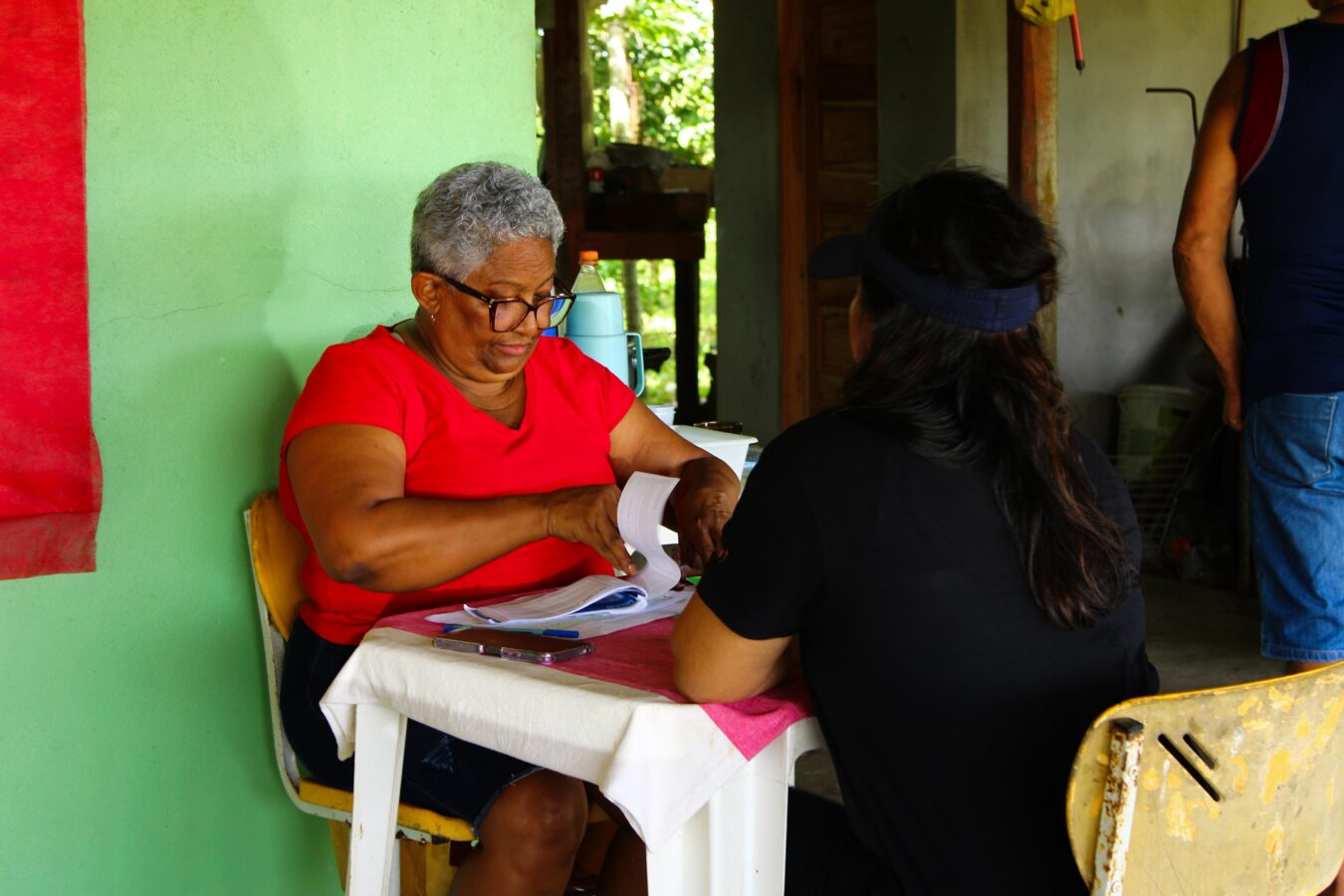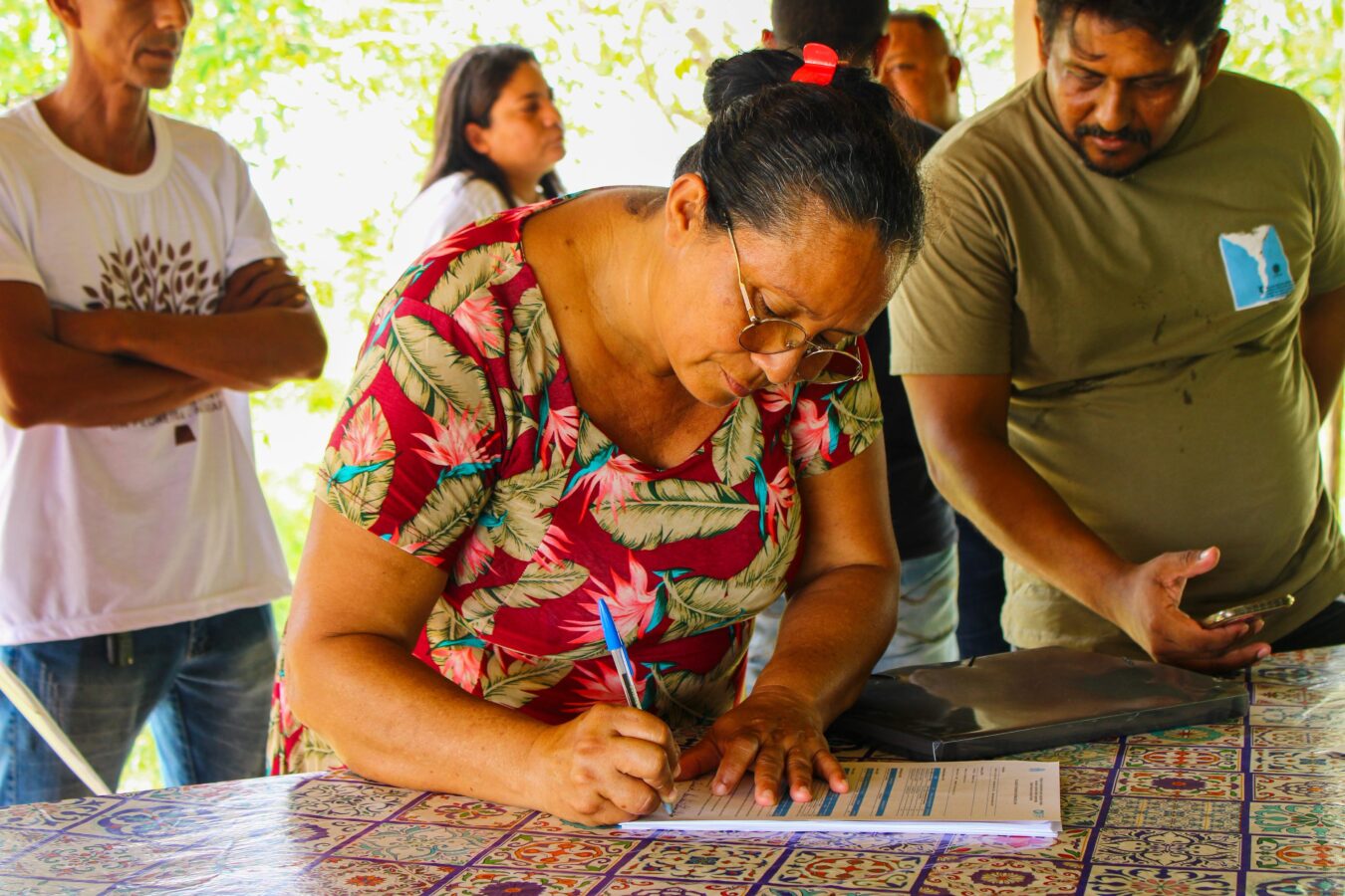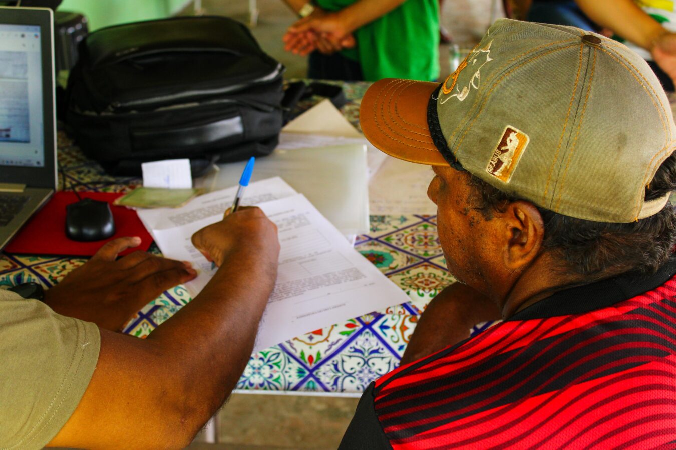 Na Associação Amigos da Terra do Assentamento Santo Antônio da Pedreira, a Semag também destinou equipes para realizar orientações, consultorias e cadastros pelo CAF. Marinei Chucre, produtora rural, contou que o CAF facilita o acesso a créditos e serviços. Desta vez, ela levou outros familiares para participar da ação.