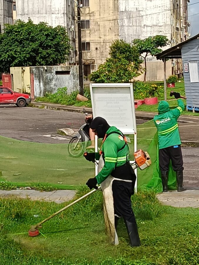 Equipes da Secretaria Municipal de Zeladoria Urbana estão, neste sábado, 21, no Residencial São José, na zona Sul de Macapá, realizando mais uma etapa da força-tarefa de limpeza promovida pela Prefeitura.