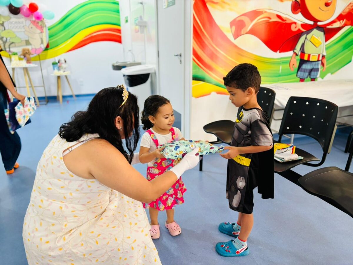 A programação contou com a distribuição de brinquedos arrecadados pela equipe do instituto. Além das atividades recreativas, os profissionais estavam fantasiados, fortalecendo o vínculo entre equipe médica, pais e pacientes.