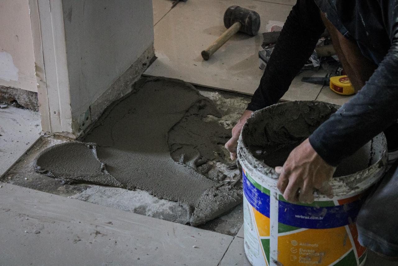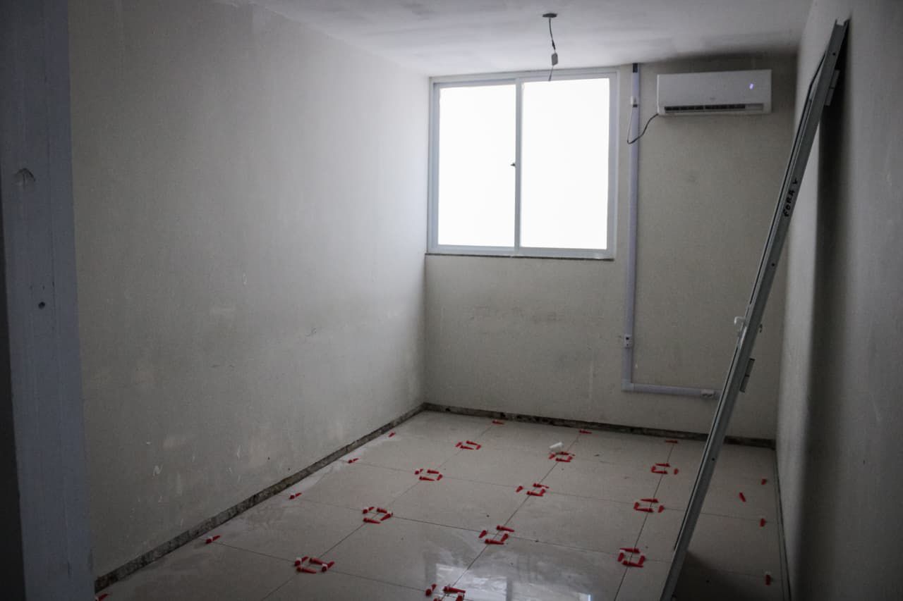Os serviços incluem a troca do telhado, pintura geral, substituição do forro, revitalização da área verde entre os blocos e a troca completa da parte elétrica da unidade. Atualmente, a obra está com 85% de execução, avançando para a fase final de conclusão.
