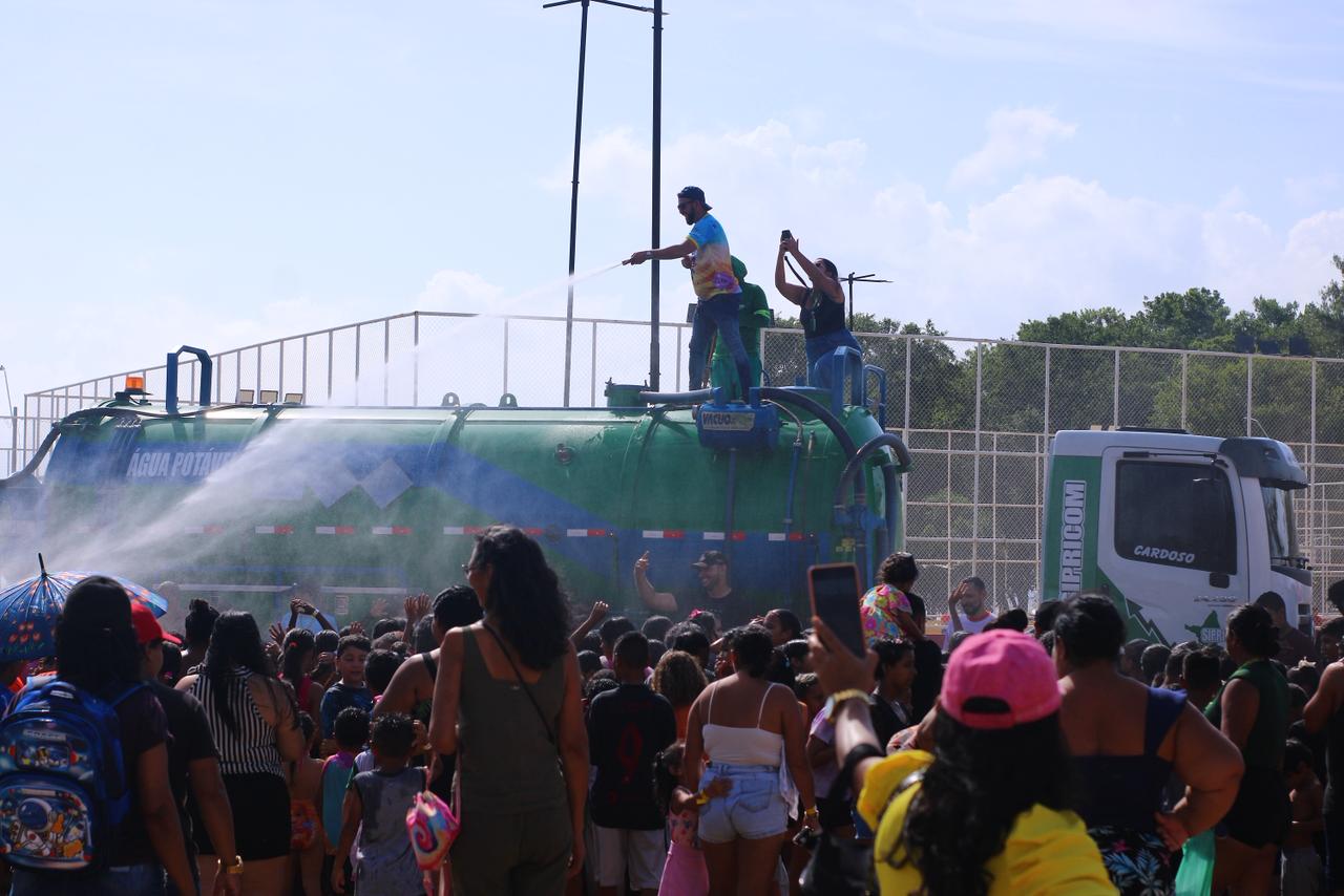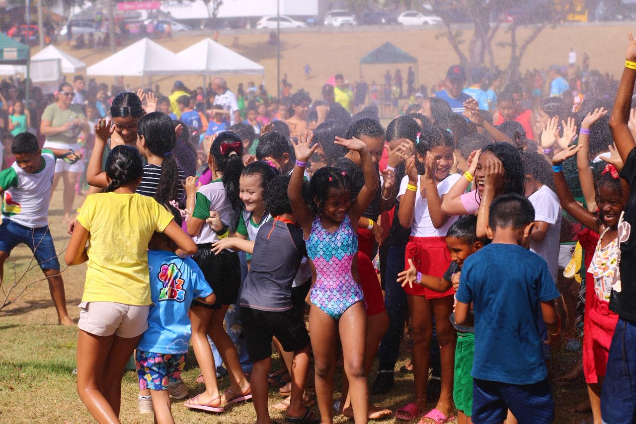 Banho de mangueira animou a criançada | Foto: Emanuelle Gomes/PMM