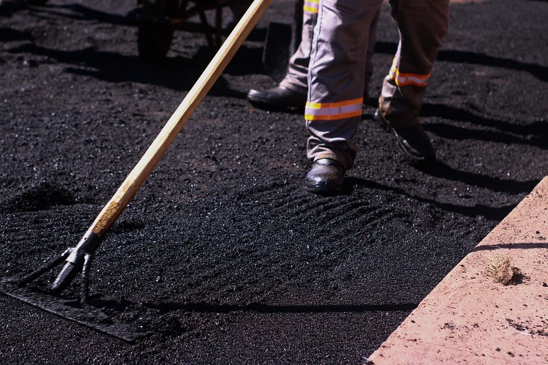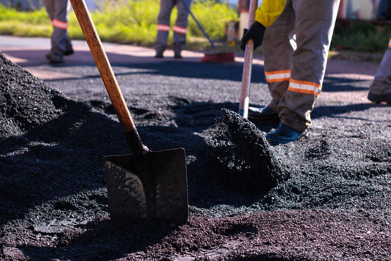 Seviço de tapa buraco em Macapá | Foto: Emanuelle Gomes/PMM