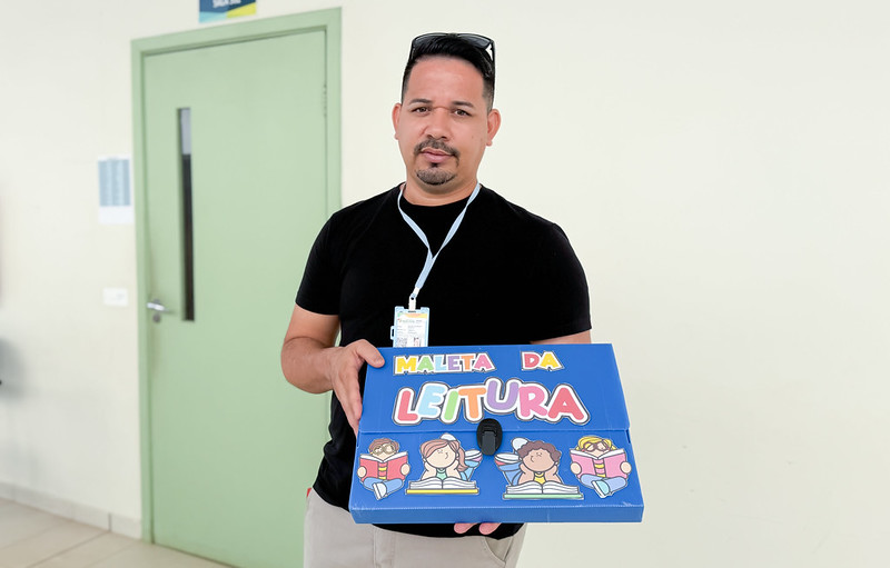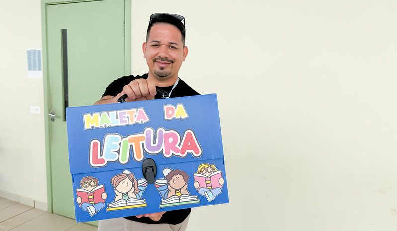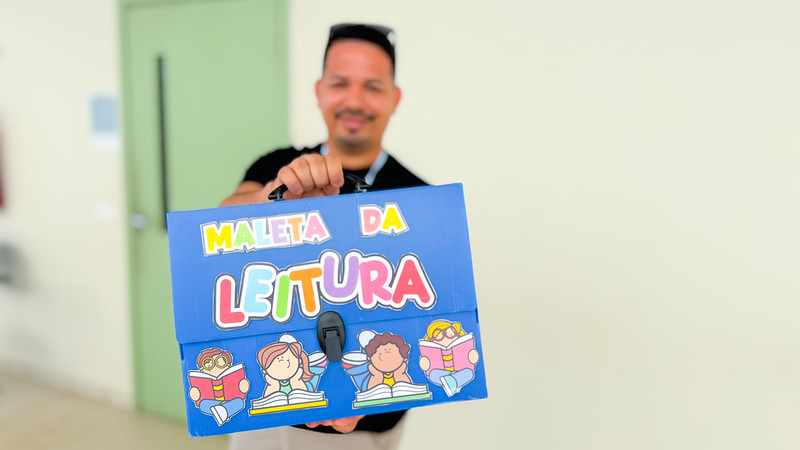 Professor Maciel Mendes e sua Maleta da Leitura | Foto: Jesiel Braga /PMM