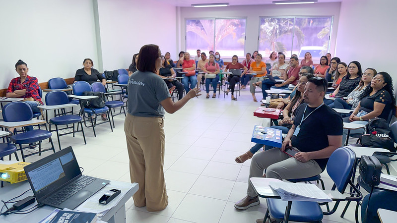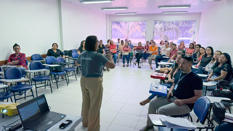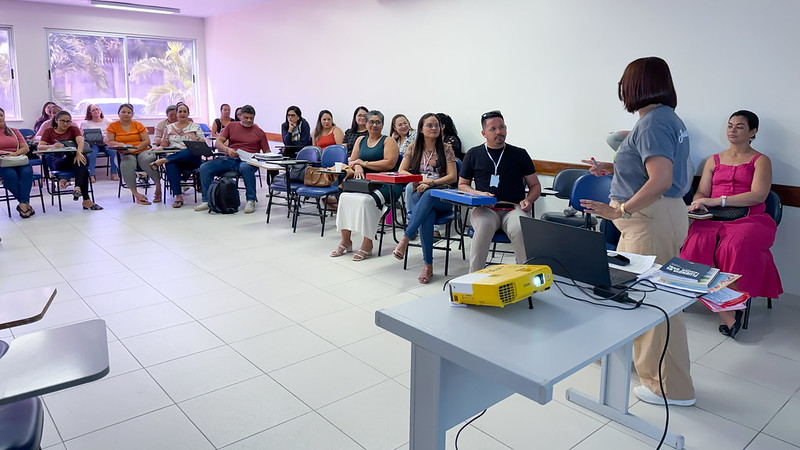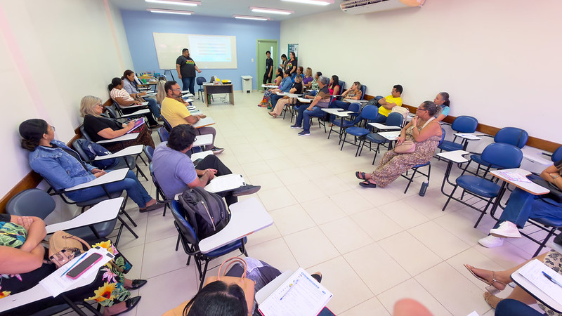 Mais de mil profissionais da Educação Municipal participam das formações, que, além de potencializar metodologias já aplicadas, também foca em estratégias de aprendizagem para as avaliações do Sistema Permanente de Avaliação da Educação Básica do Estado do Amapá (Sispaeap) e do Sistema de Avaliação da Educação Básica (Saeb).