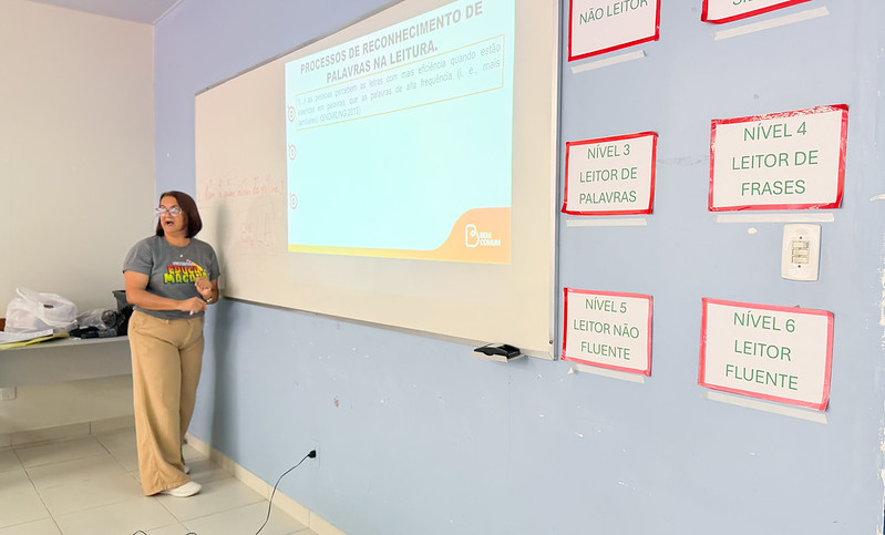 Esta 6ª formação do Programa, no ano letivo, acontece no período de 7 a 9 de outubro e é direcionada a professores do 1º ao 5º ano do Ensino Fundamental. Nesta terça-feira (7), a formação ocorreu em uma faculdade, na zona sul da cidade, nos turnos da manhã e da tarde. Somente no dia 9 de outubro, a capacitação será realizada no auditório da Semed, no centro da cidade, voltada exclusivamente para professores do 1º ano.