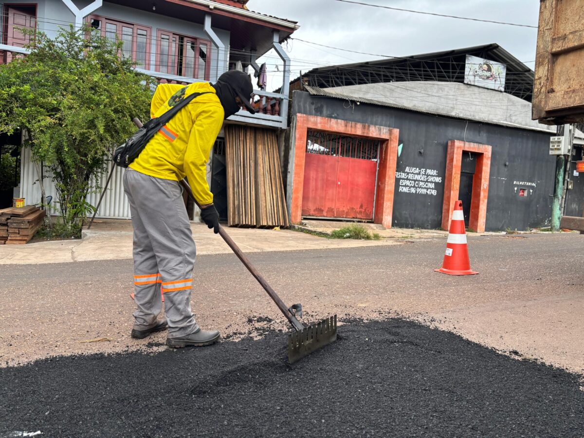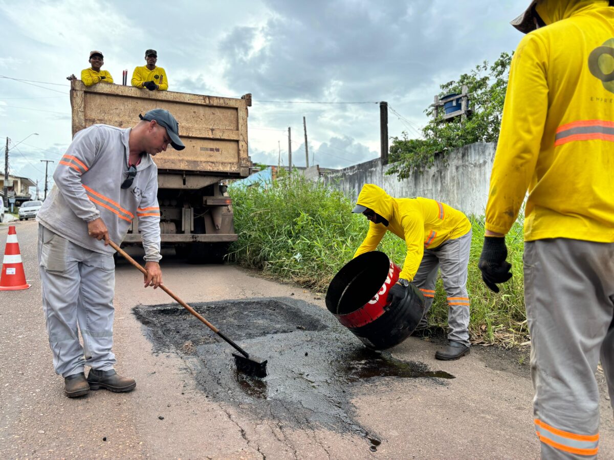 Nesta quinta-feira (10), a Prefeitura de Macapá intensificou os serviços de tapa buraco em vias da capital como parte do Programa Macapá Mais Limpa. A iniciativa tem como objetivo reorganizar a cidade por meio de ações integradas de limpeza urbana, pavimentação e manutenção emergencial das ruas. Três vias da Zona Norte, localizadas no bairro Pantanal (rua Horto, rua do Marabaixo e avenida Sebastião de Alcântara) receberam o serviço pela equipe da Secretaria Municipal de Obras e Infraestrutura Urbana (Semob).